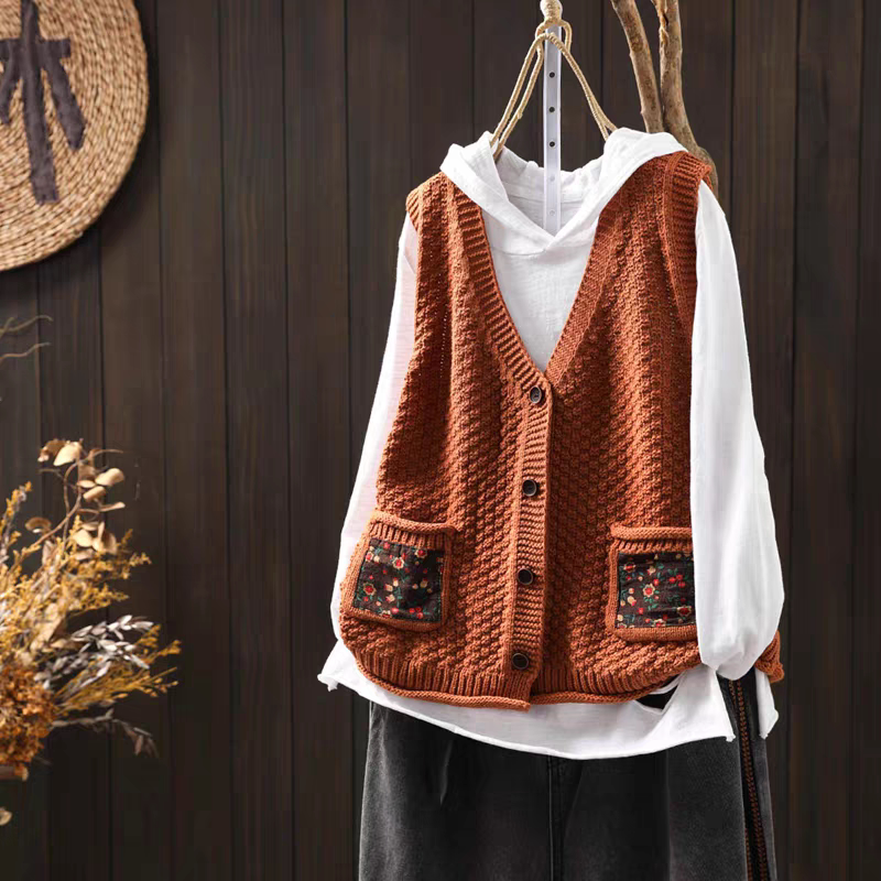 马夹坎肩别致叠穿小马甲2025秋季新宽松V领贴布口袋外穿上衣