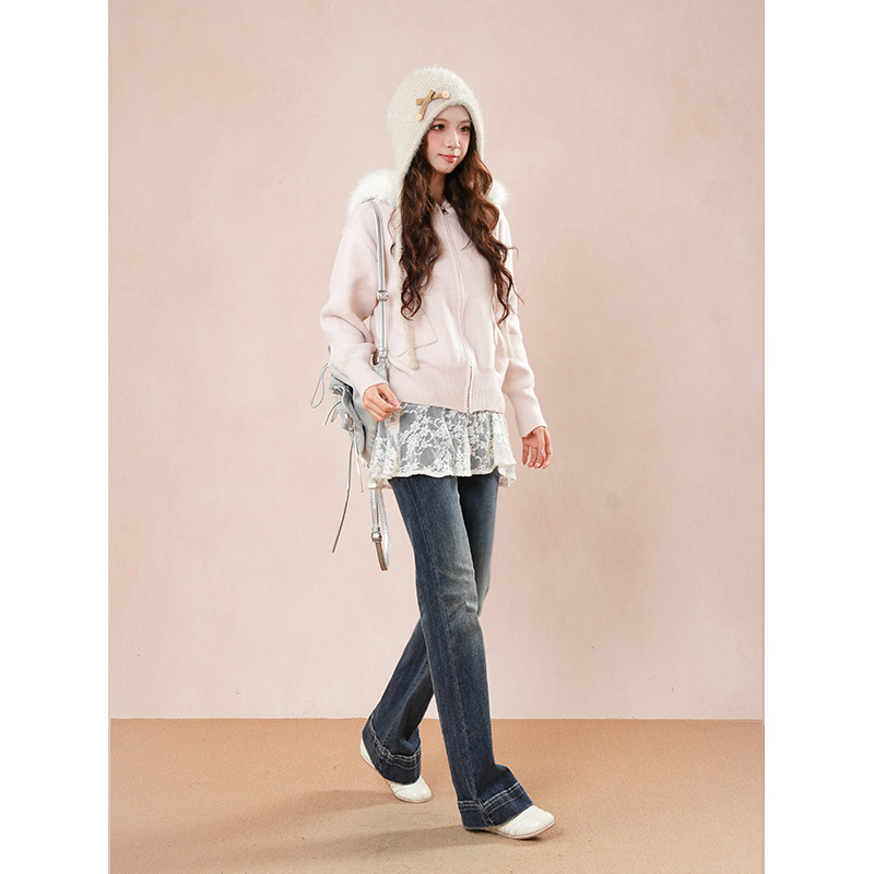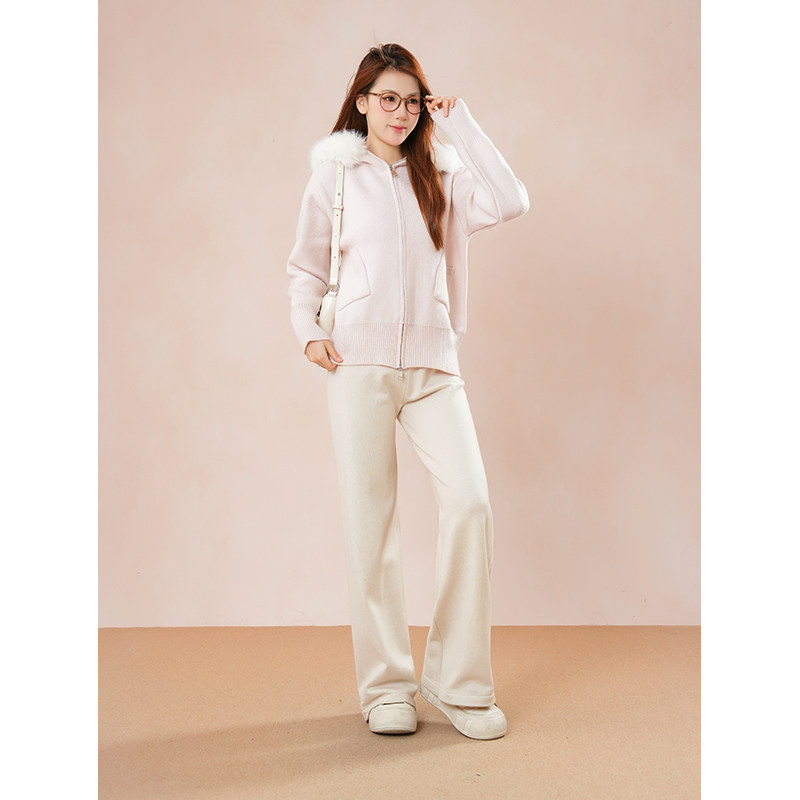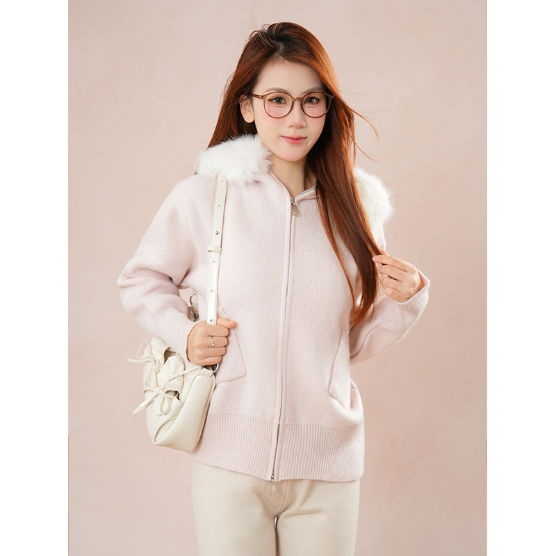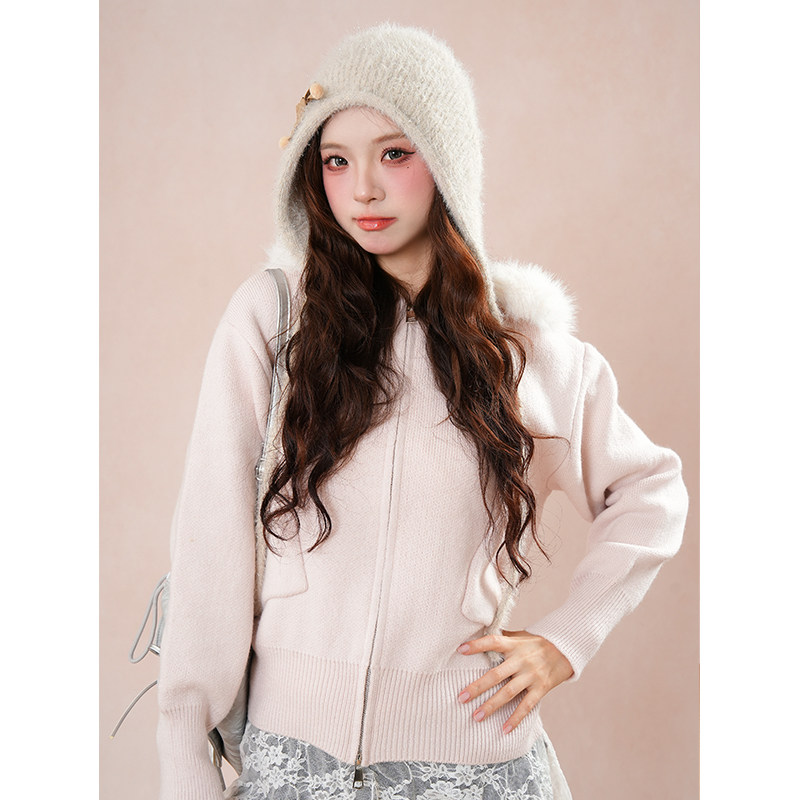 娇嗲少女感 甜美可爱大毛领毛衣外套慵懒感宽松秋冬连帽针织开衫