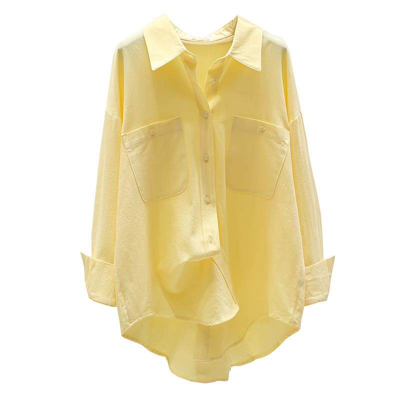 潮牌设计感黄色衬衫女2025春秋新款气质宽松长袖白色衬衣上衣外套