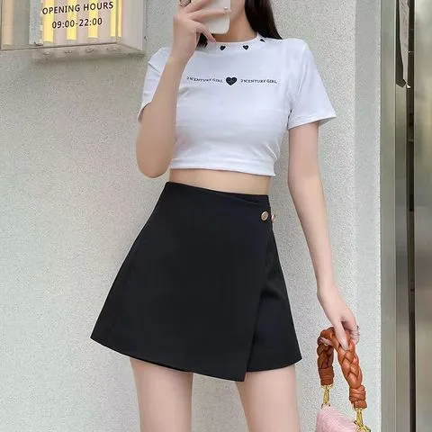 假两件2023宽松西装短裤一体裤春夏短裤裙女a字裙裤显瘦休闲高腰