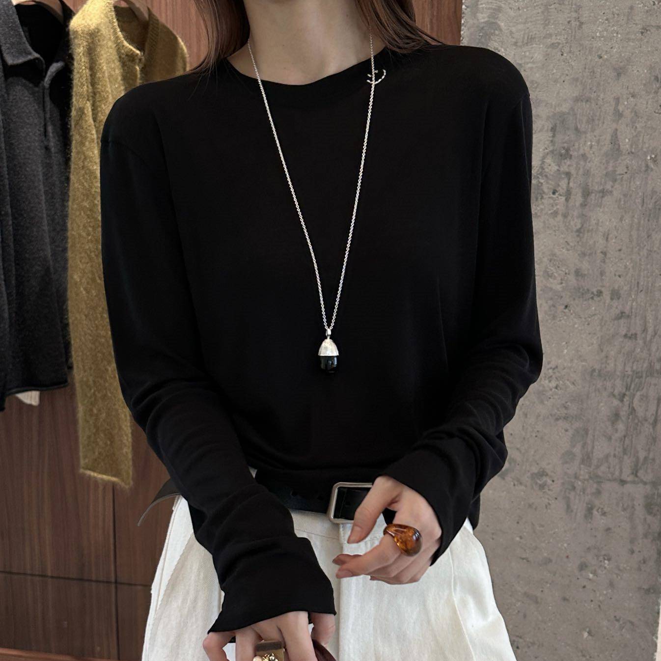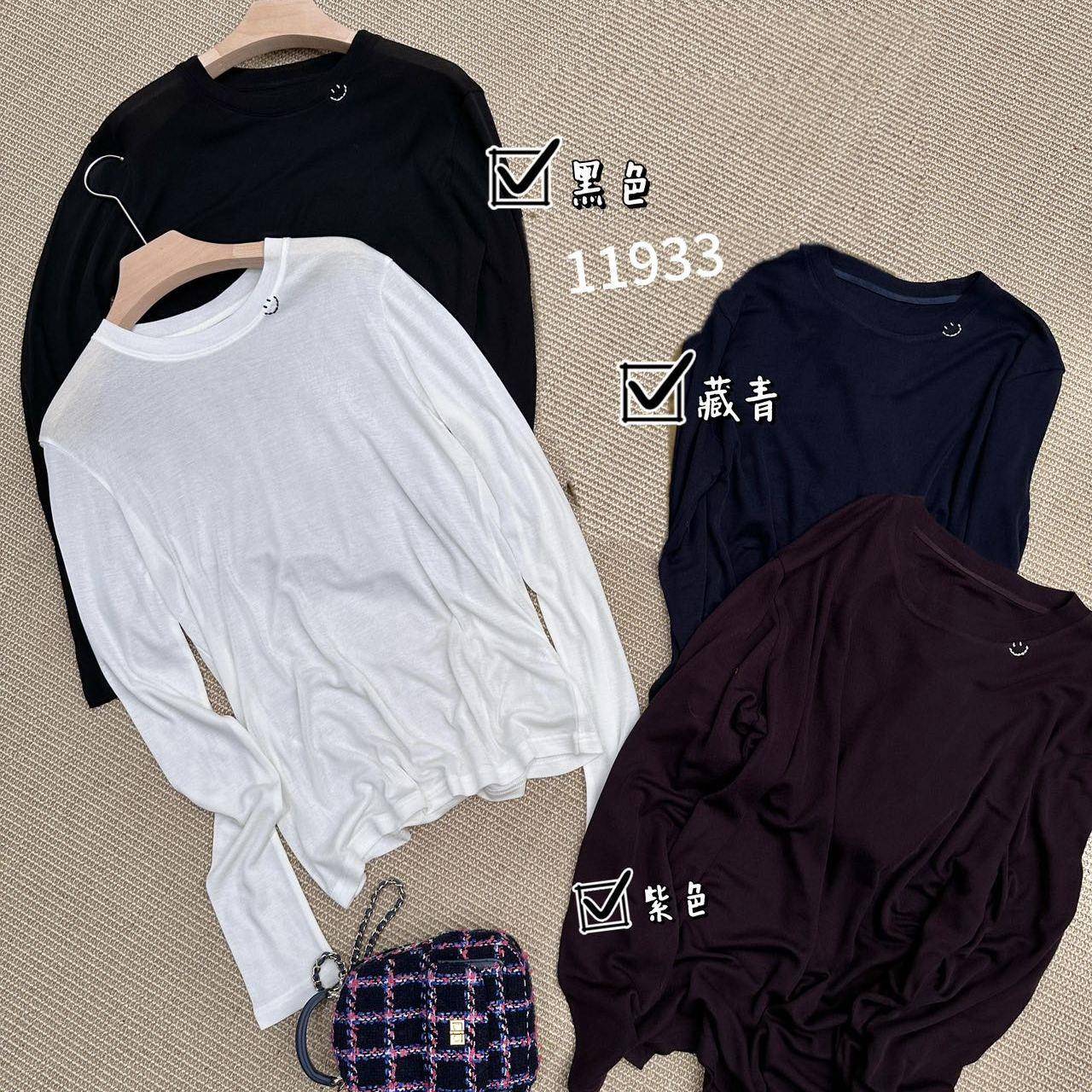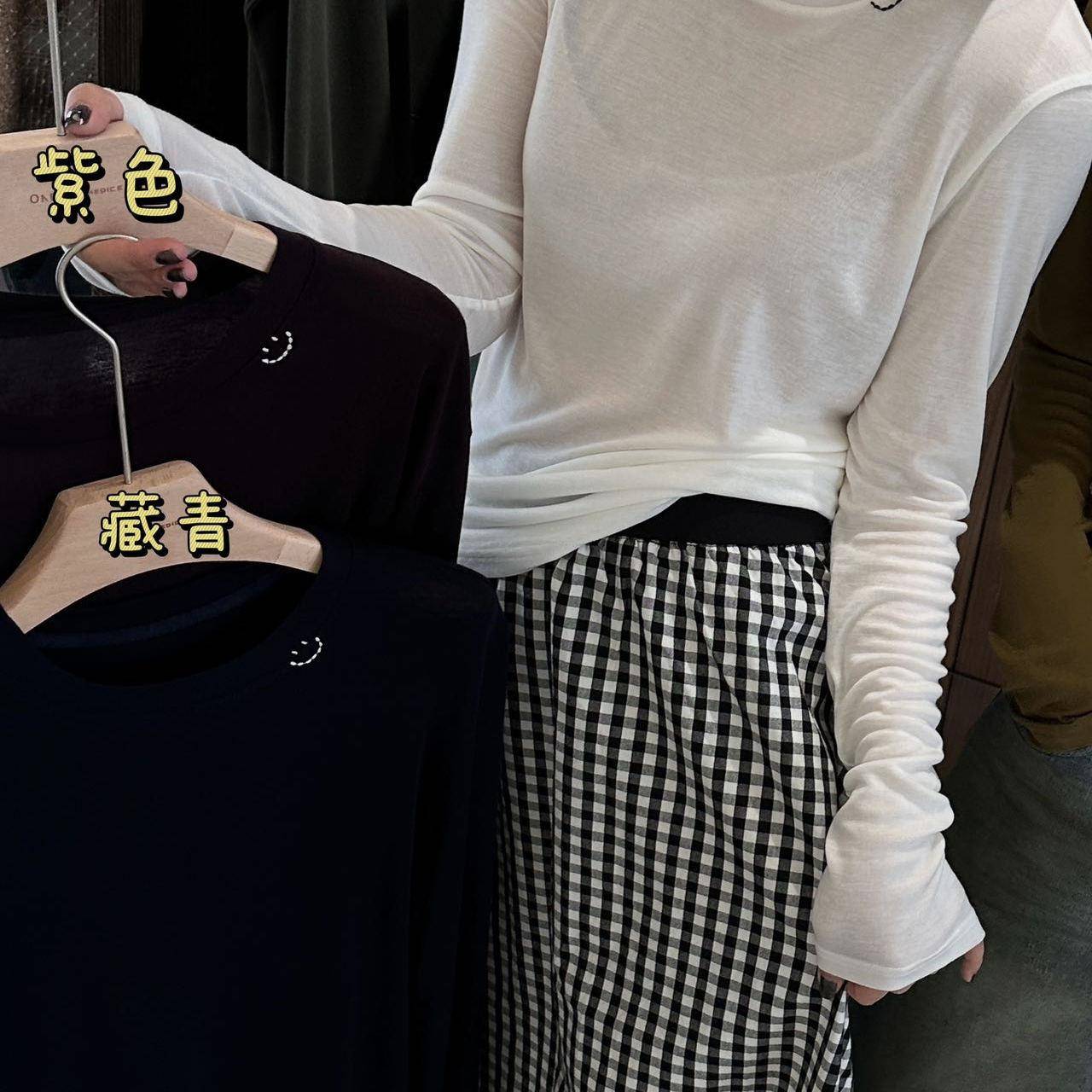 秋季one11933韩版宽松天丝圆领长袖T恤女休闲笑脸刺绣打底衫上衣