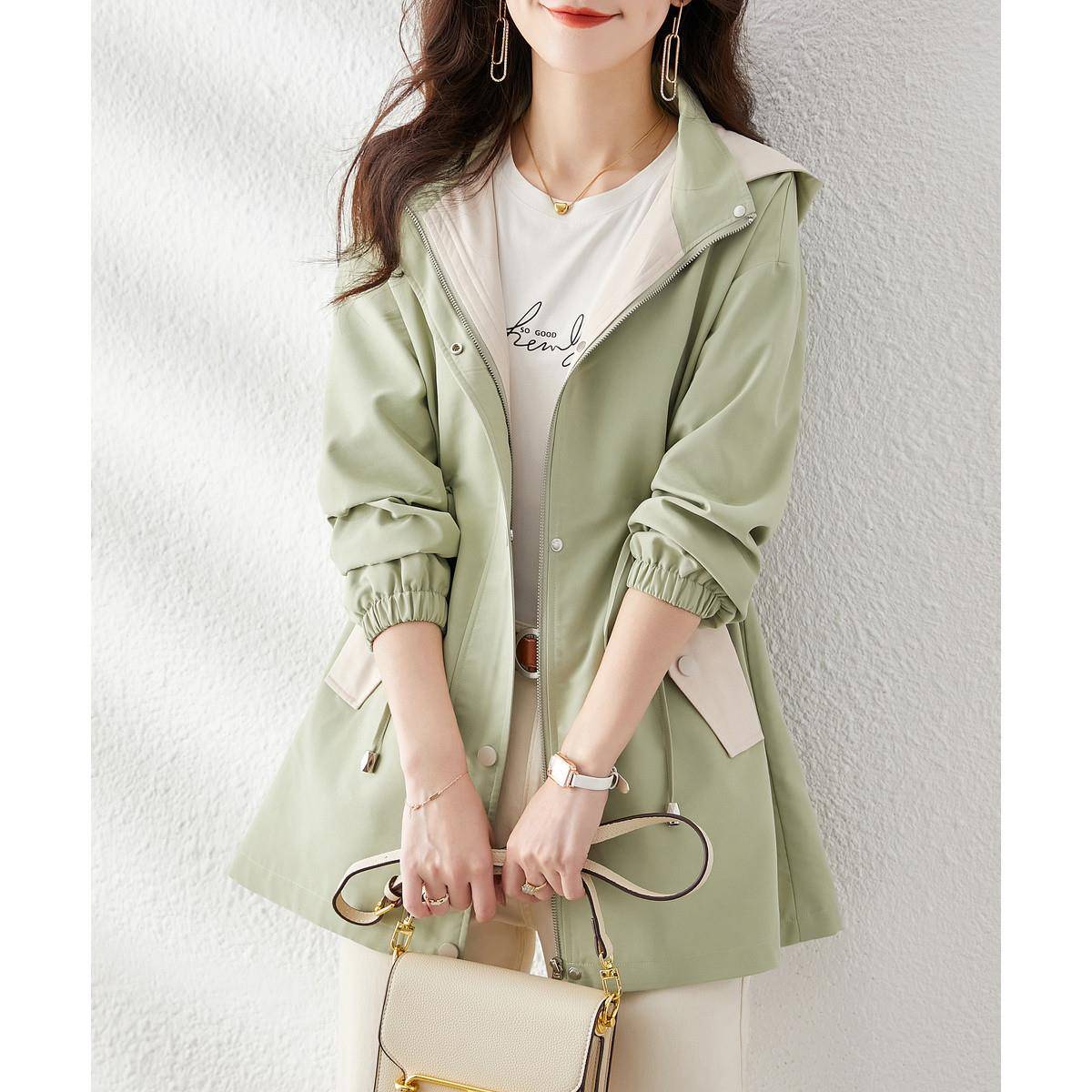 尚静撞色连帽风衣外套女2025春秋季新款女装气质休闲百搭宽松上衣