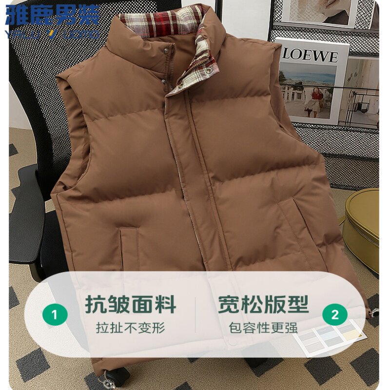 雅鹿男装男女棉马甲2025冬季新品潮牌休闲舒适厚款纯色无袖马甲