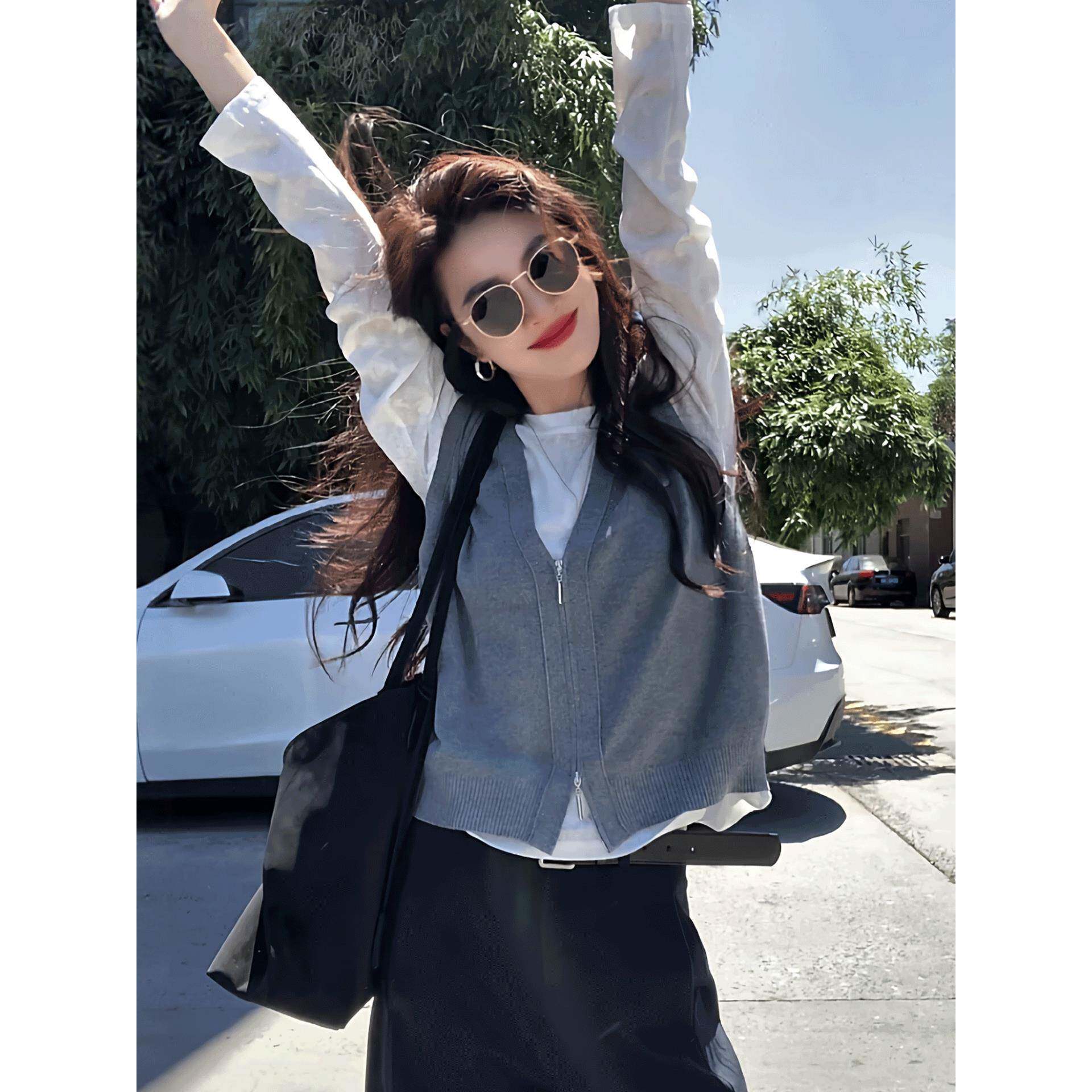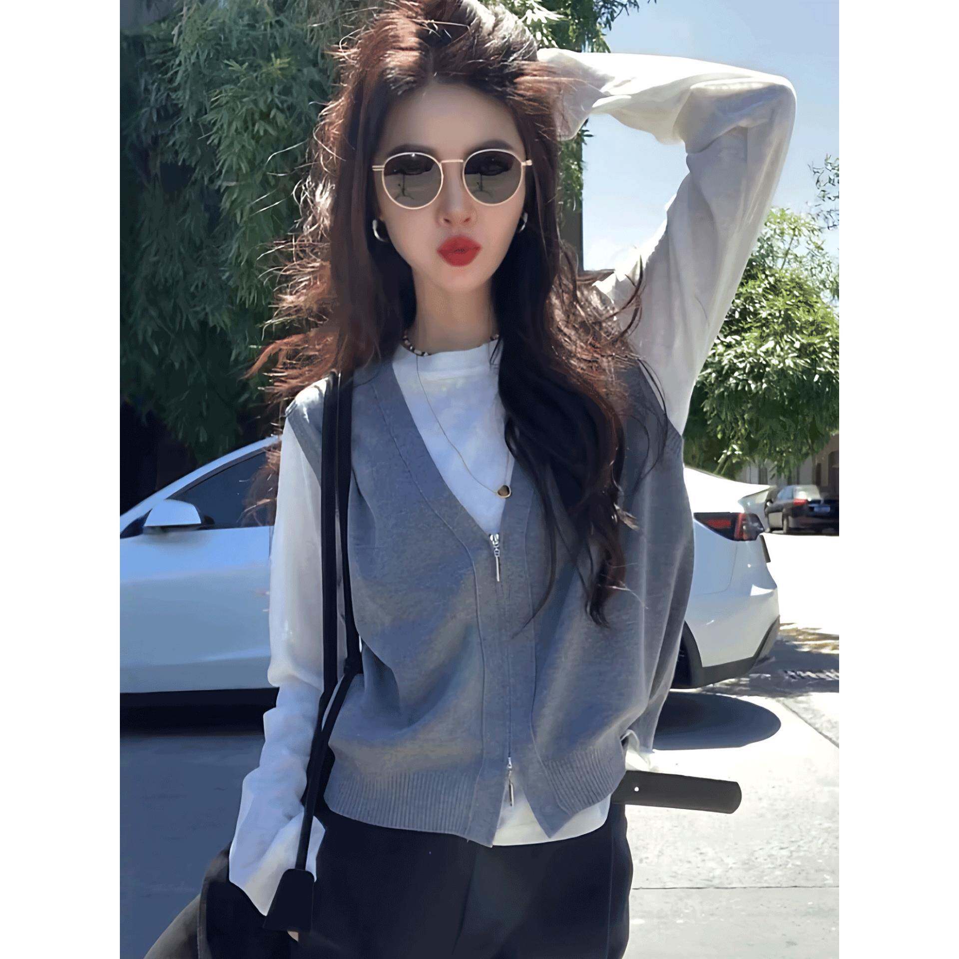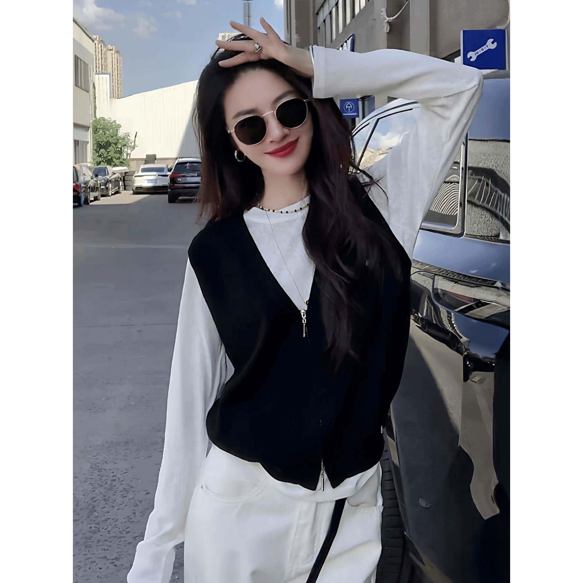 韩系早秋薄款穿搭针织衫女2025新款爆款针织马甲打底衫真两件上衣