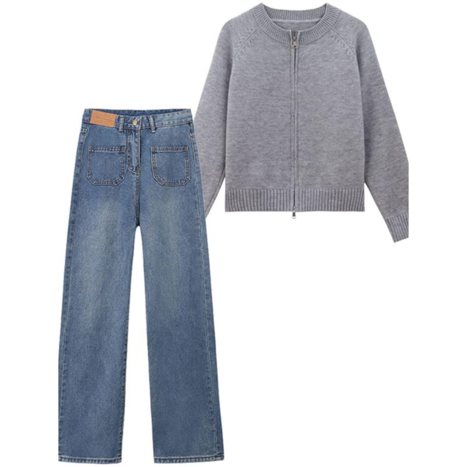 蓝色毛衣外套女针织开衫学生国潮牌秋冬外穿拉链上衣通勤卫衣加厚