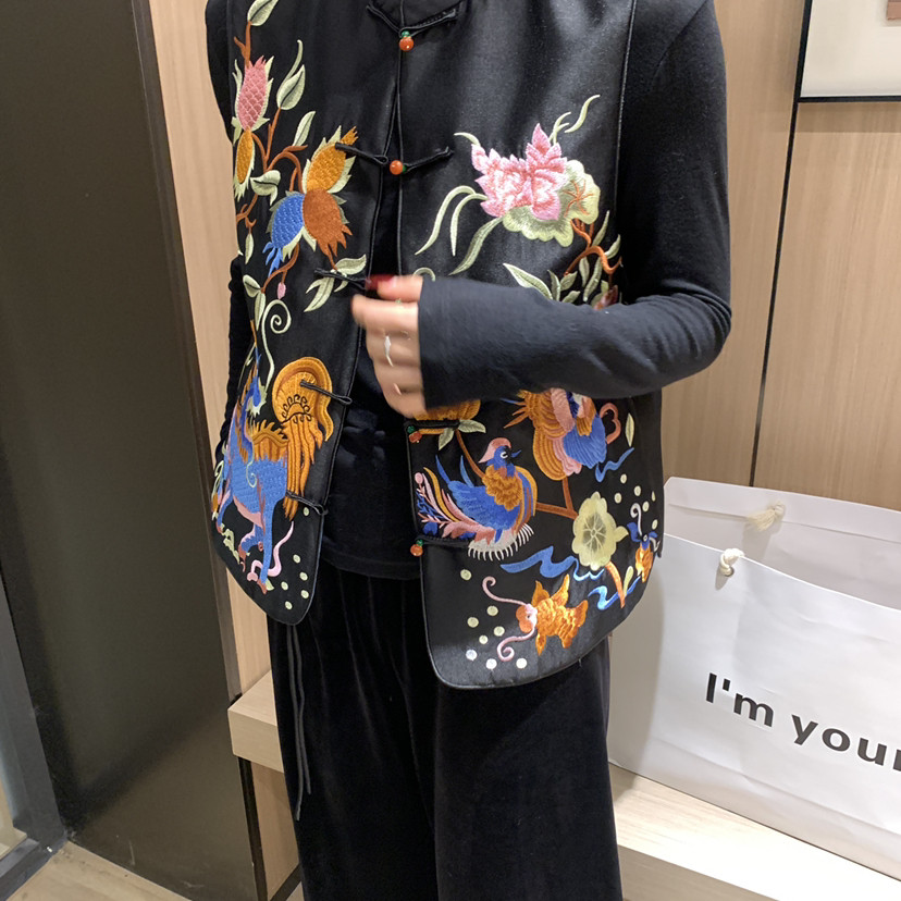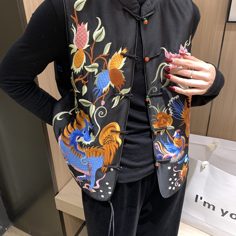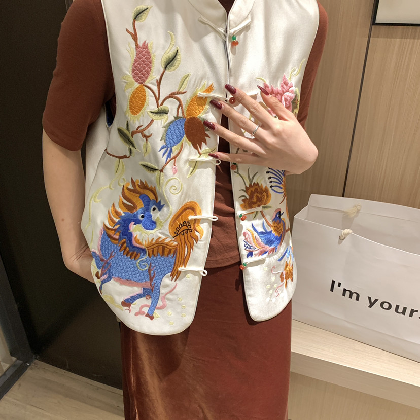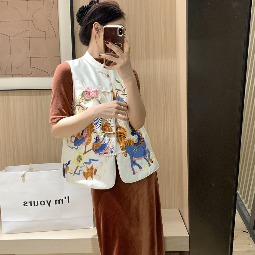 王奕可amzg新中式图案刺绣立领盘扣马甲(含15羊毛)9309