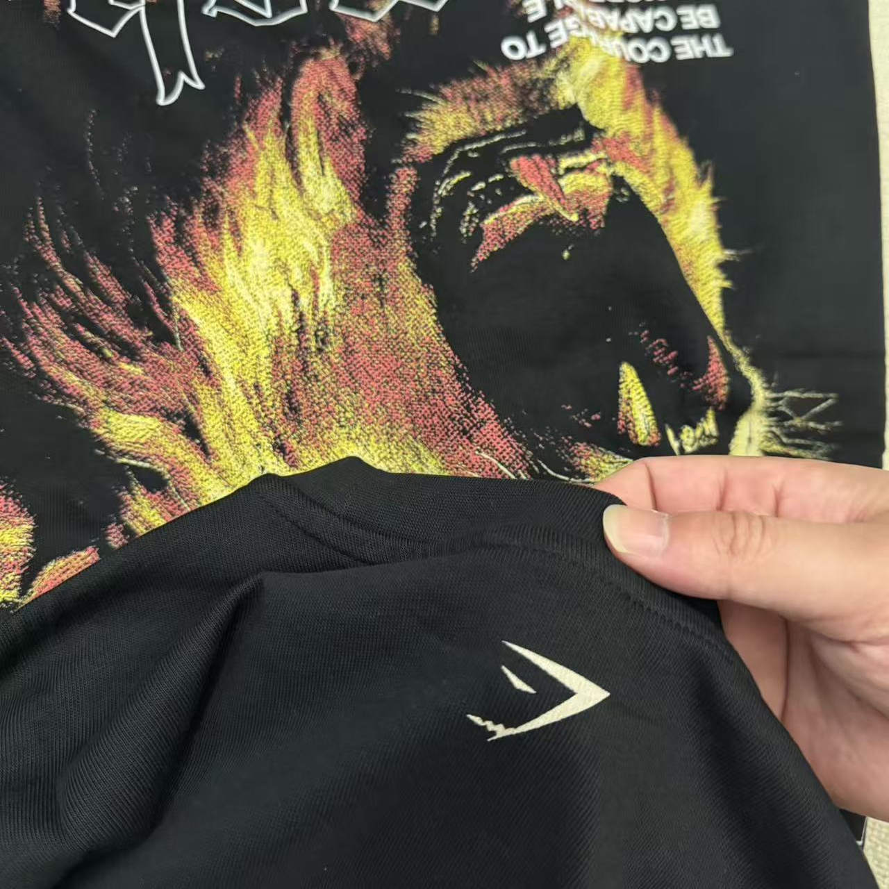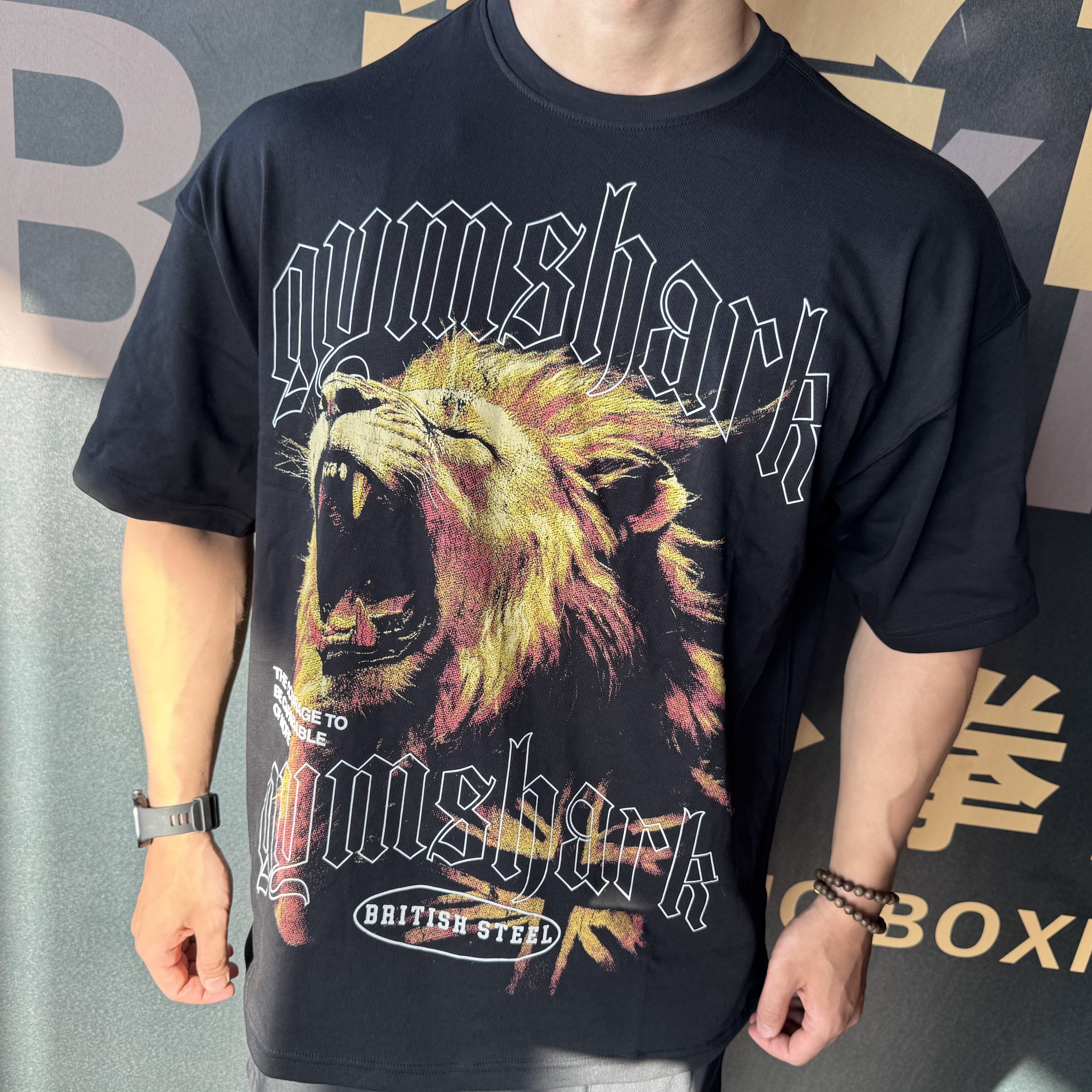 GYMSHARK鲨鱼健身大狮子头宽松短袖T恤男女运动美式透气五分袖