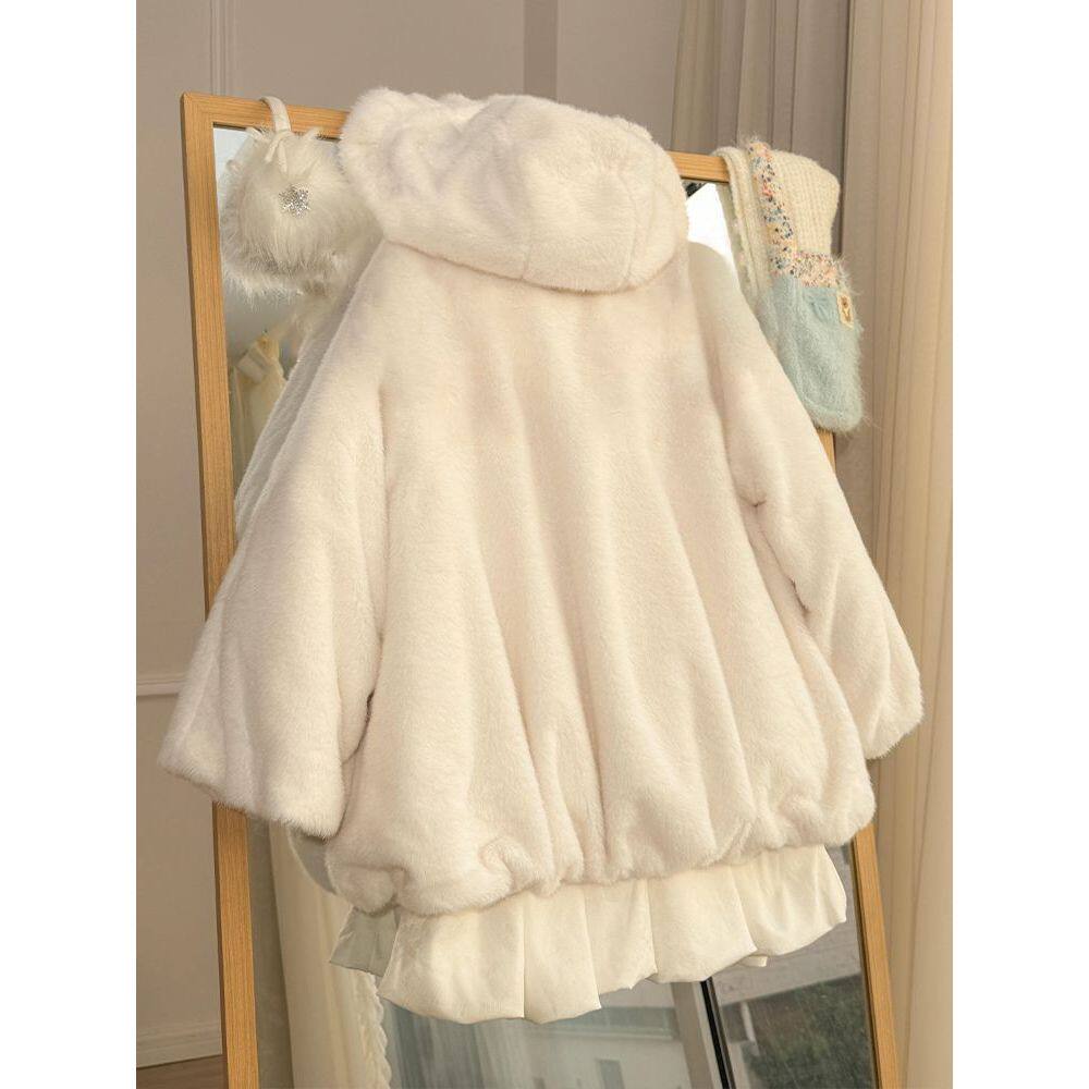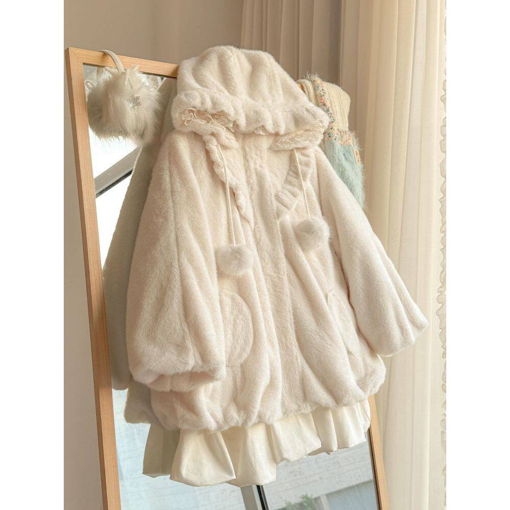 初雪束语 软糯毛绒绒连帽外套2025冬季新款甜美可爱少女感上衣
