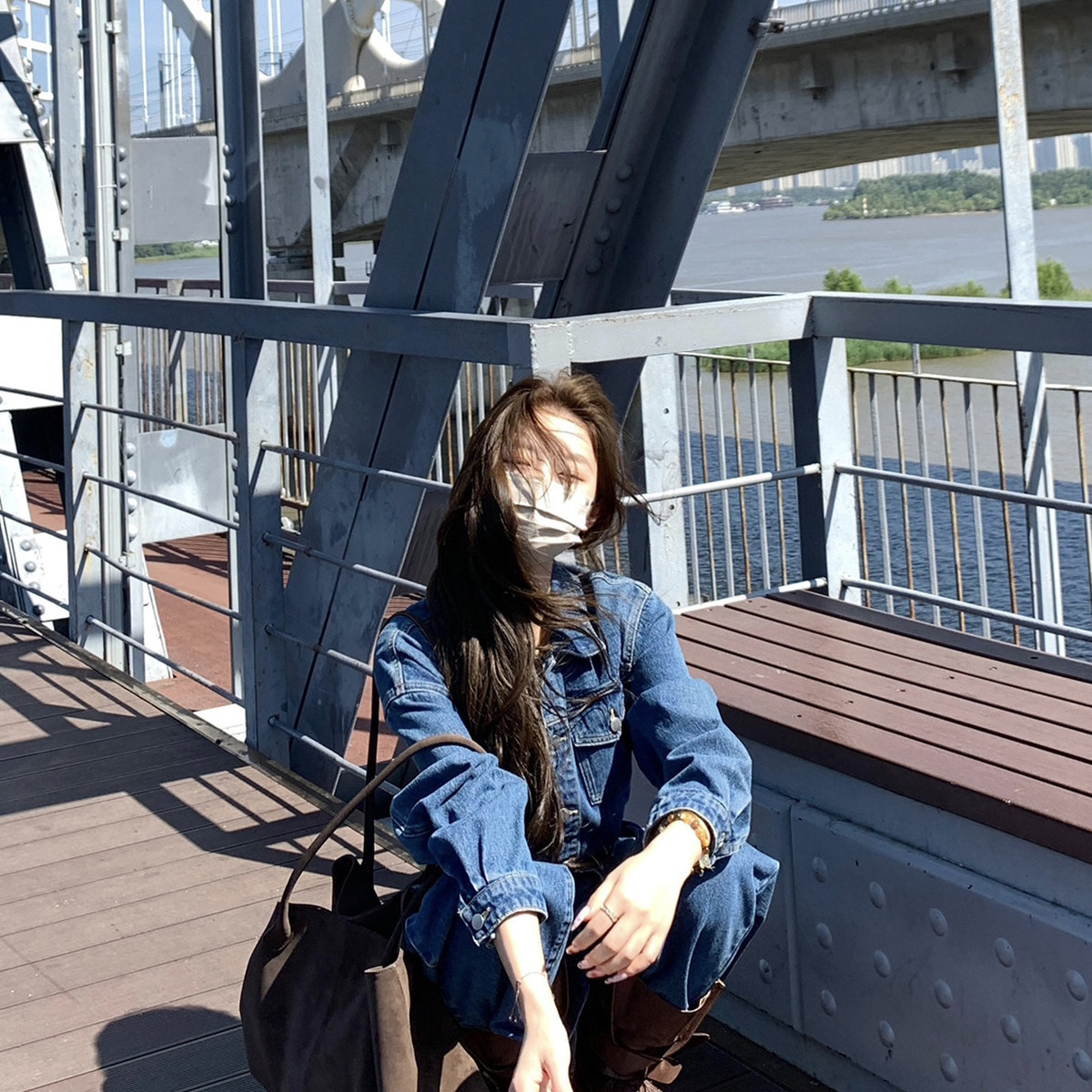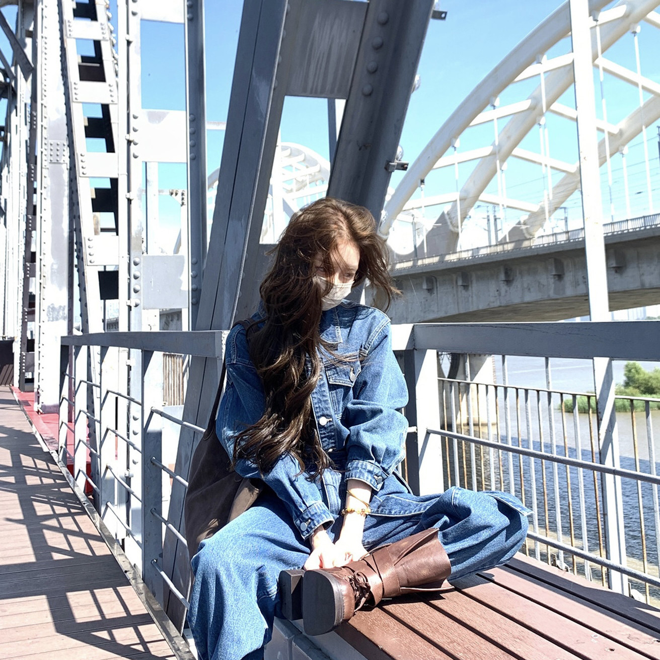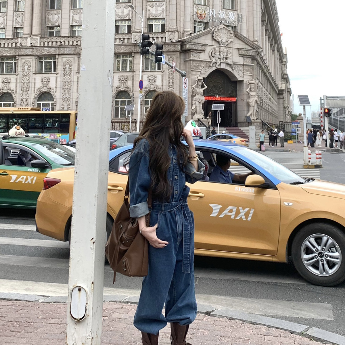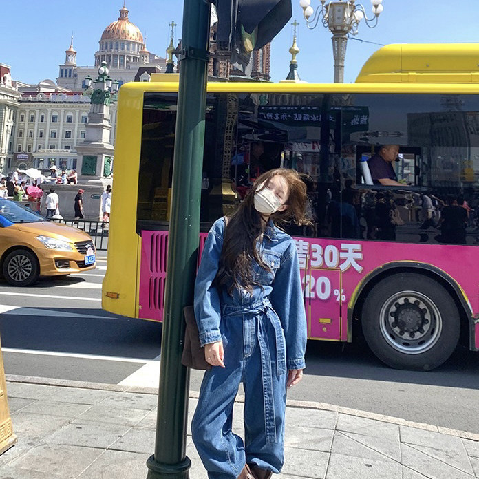 甜酷韩版牛仔连体衣显瘦连体裤长裤子连体裤(配腰带)