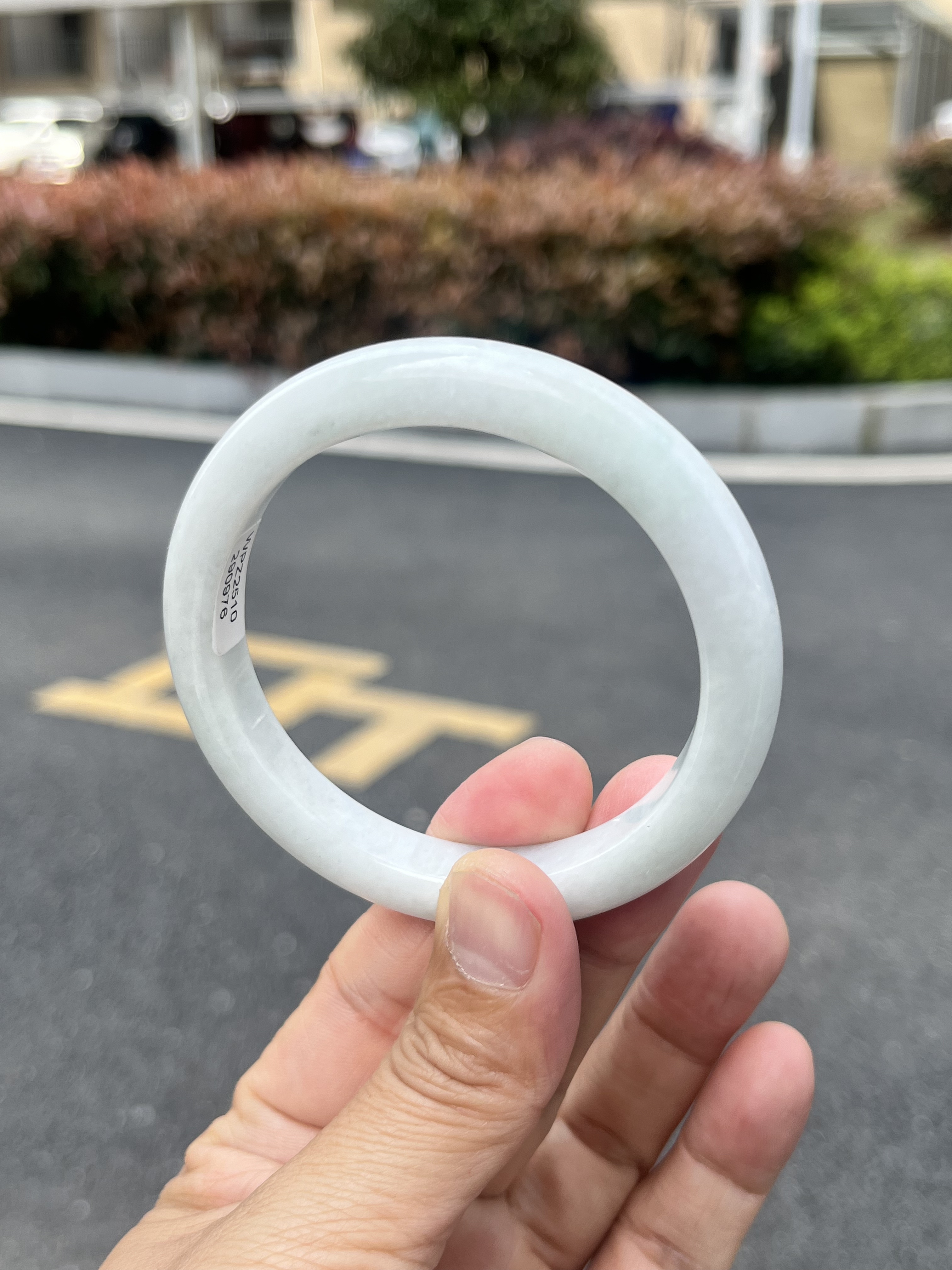 【特价】天然A货翡翠手镯57圈泥鳅背白月光有点裂纹