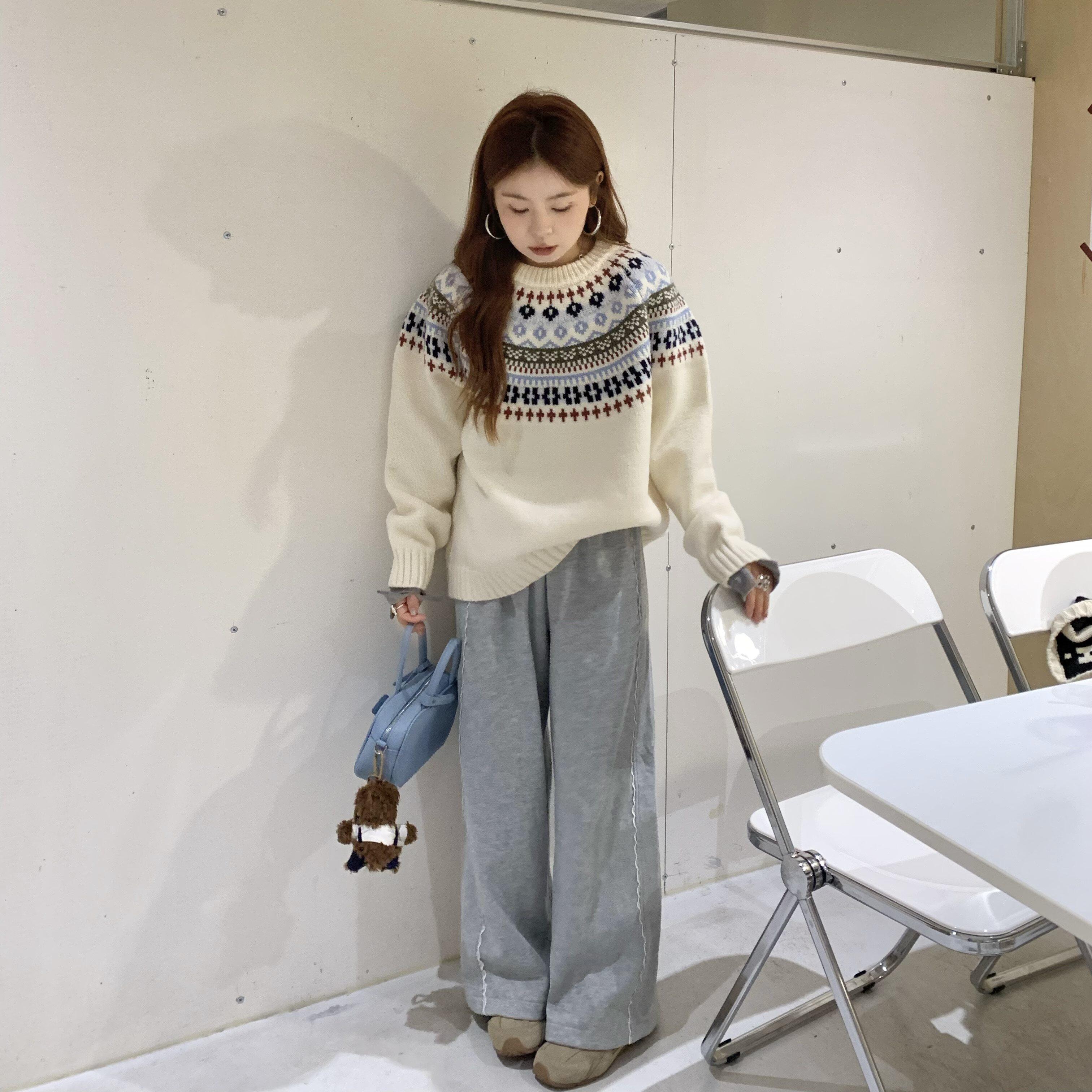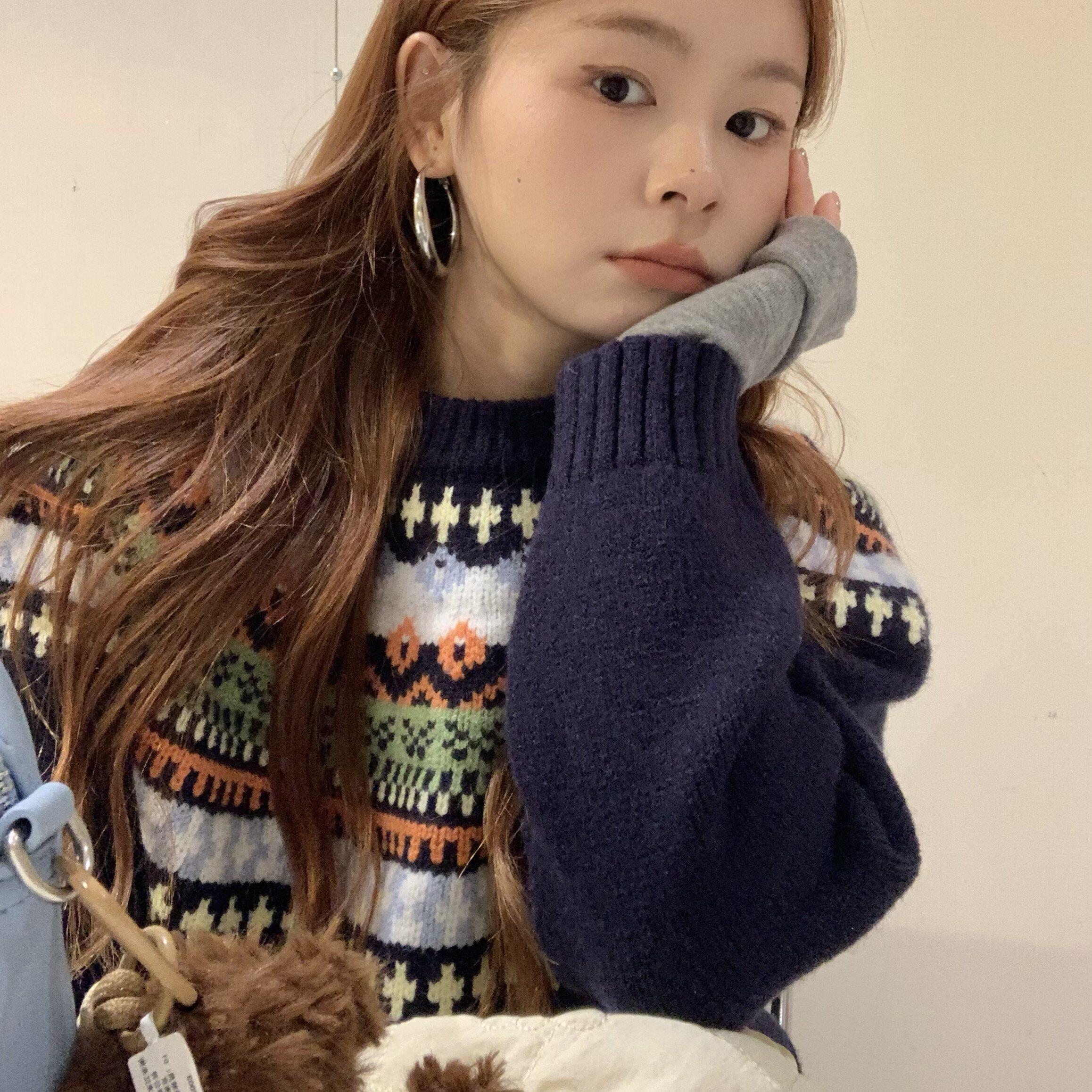 费尔岛甜美软糯毛衣女秋冬加厚百搭韩系提花慵懒风套头针织衫上衣