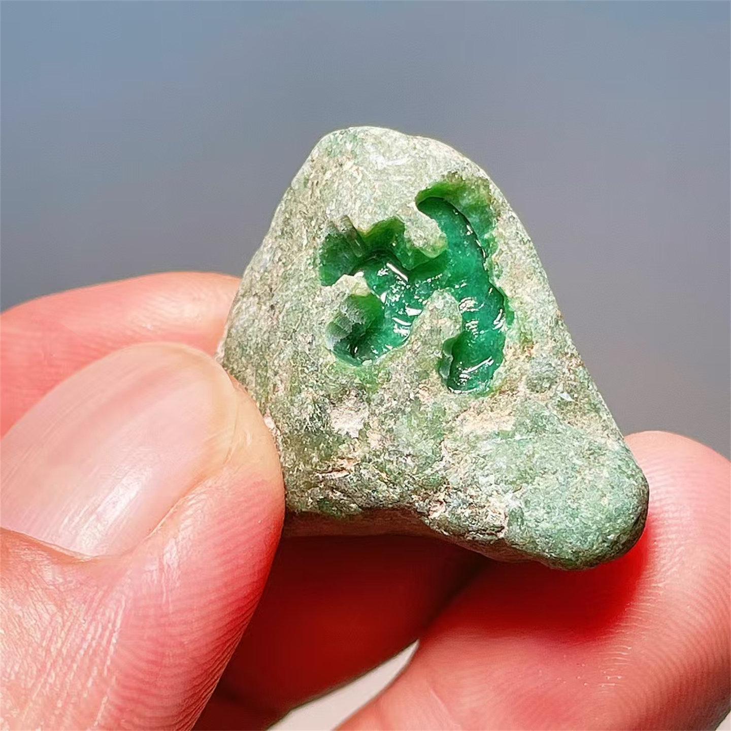 A86818 缅甸天然翡翠原石老坑后江场口色料戒面料 重14克