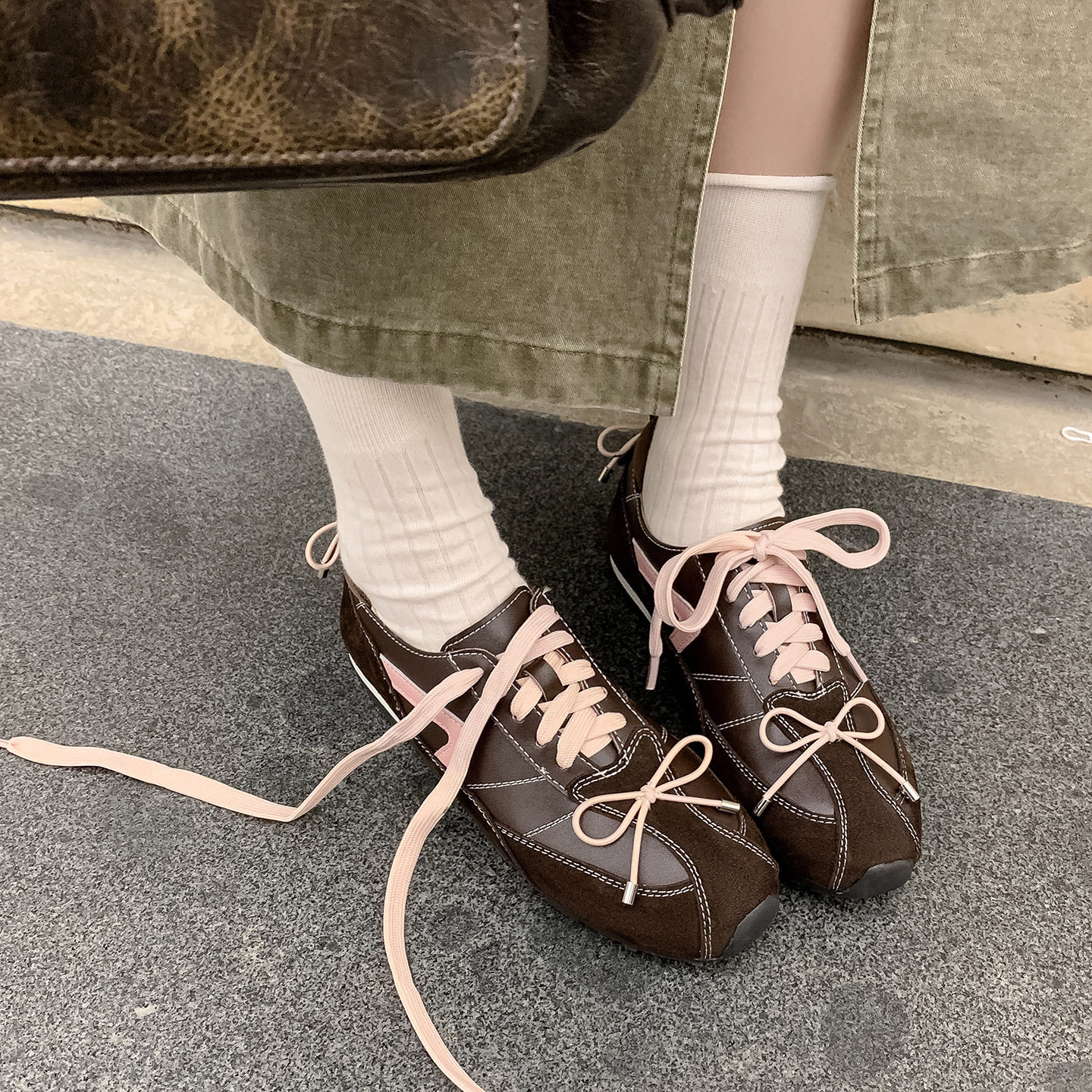 2025年新款真皮系带德训鞋百搭轻便不对称鞋舌拳击鞋女休闲运动鞋