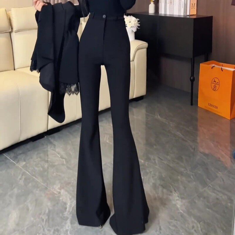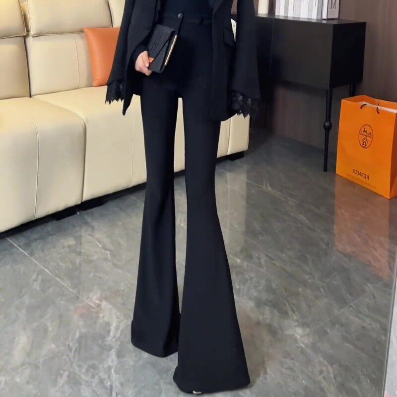 大喇叭裤女2025新款黑色西装裤子高腰修身显瘦垂感休闲 拖地长裤