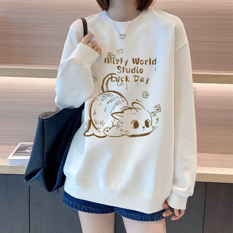 白色圆领卫衣女款2025新款爆款冬季洋气减龄上衣宽松长袖加绒外套