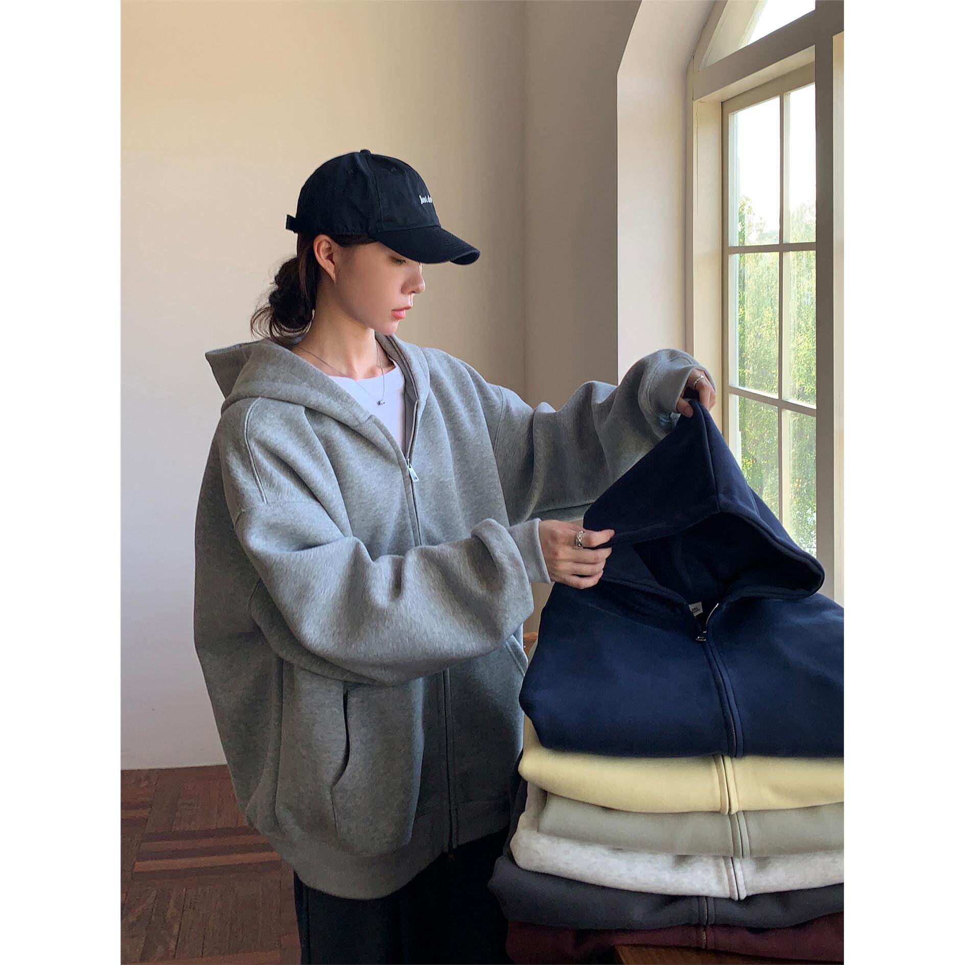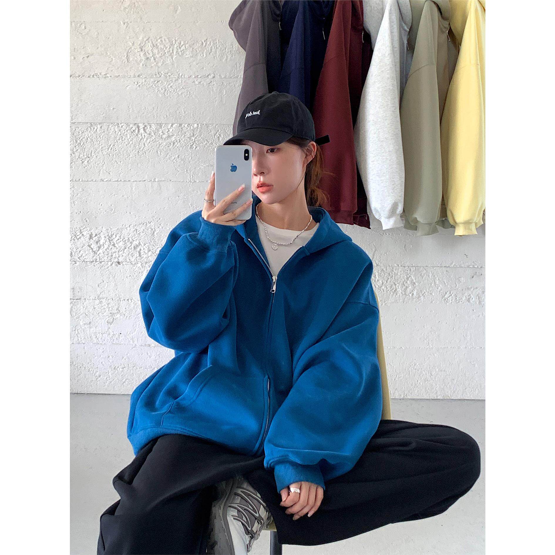 Vs what「素人爱豆」纯色系无性别韩版卫衣外套拉炼开衫慵懒上衣