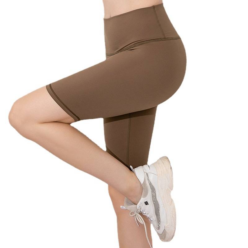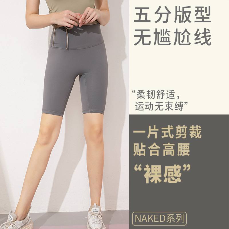 超弹锦纶短裤裸感瑜伽服女中骑行短裤紧身打底速干跑步运动健身裤
