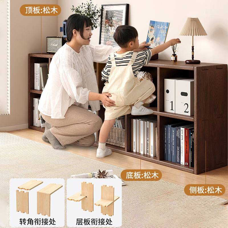 全实木书架置物架落地靠墙组合格子柜客厅松木储物收纳矮家用书柜
