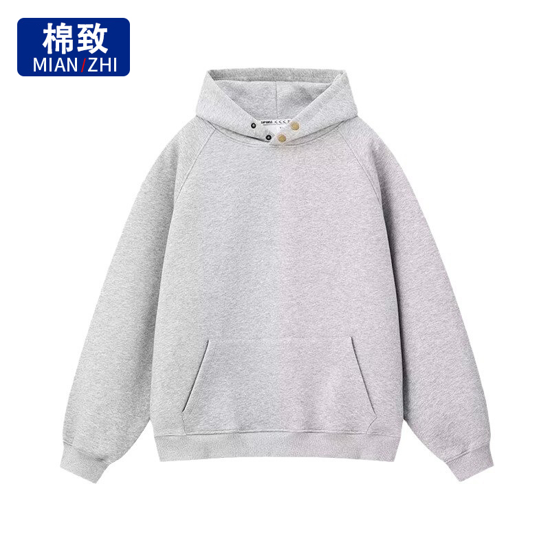 棉致美式纽扣连帽纯色卫衣重磅长袖男女高街厚实宽松纯色春秋情侣