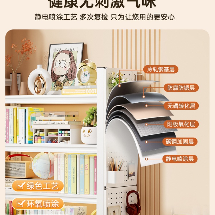 首页> 家居> 钢制书架多层落地置物架家用儿童简易书柜一体靠墙铁艺收纳储物w&