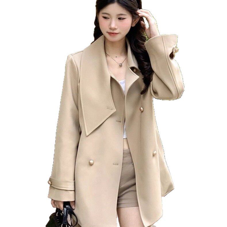 早秋2025年爆款名媛风网红爆款显瘦围脖设计黑色风衣外套女装