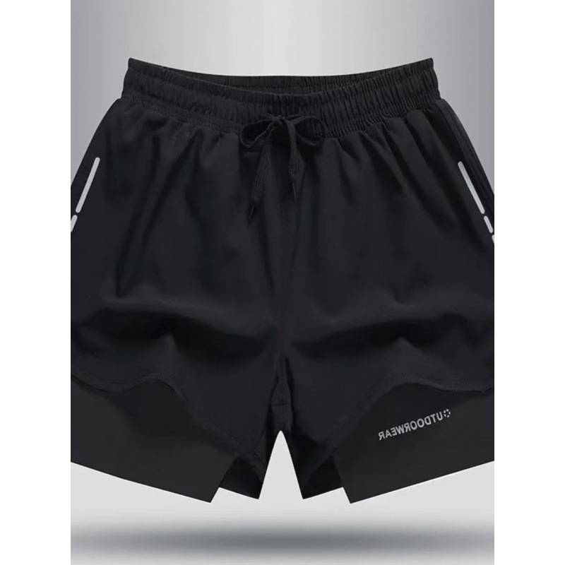男士泳裤夏冰丝双层防尴尬泳衣运动跑步裤游泳沙滩裤弹力大码短裤