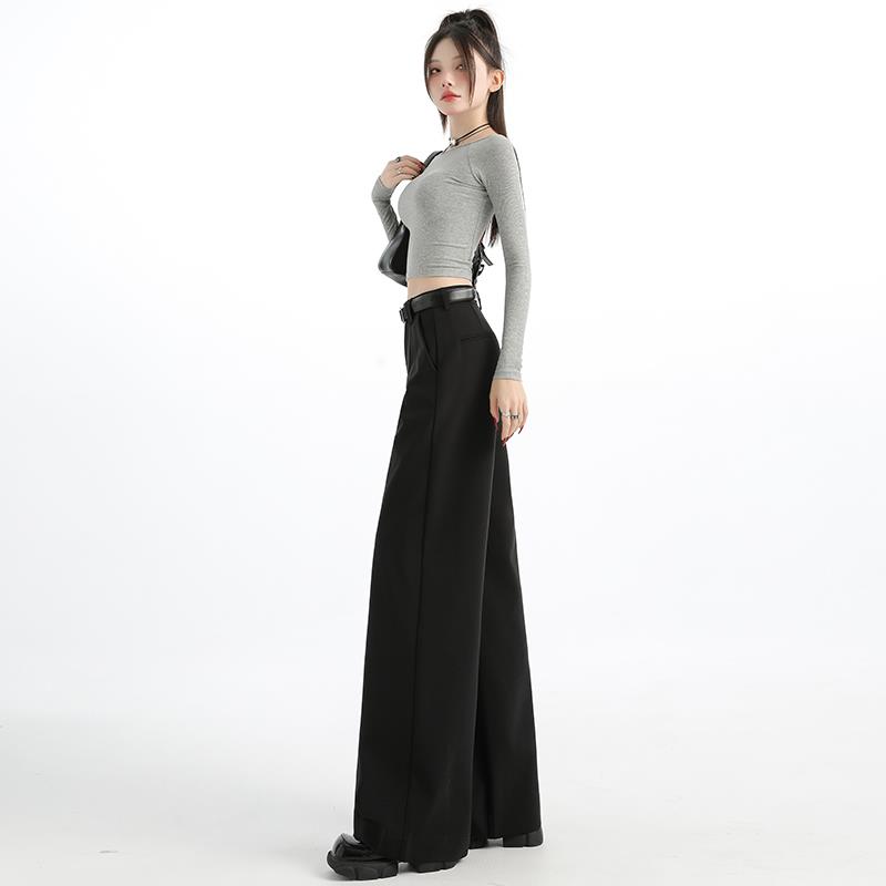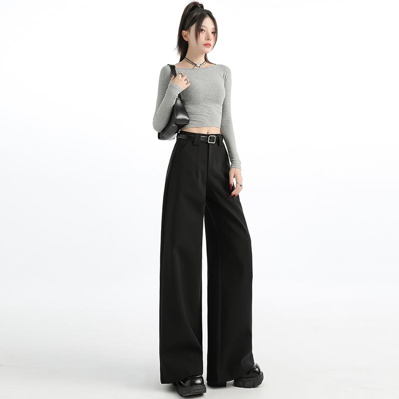 高级垂感黑色直筒西装裤女夏季薄款2025新款高腰宽松阔腿休闲 裤