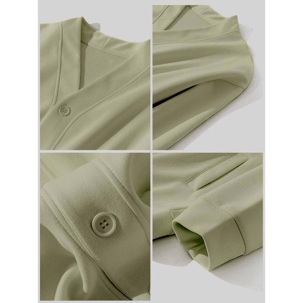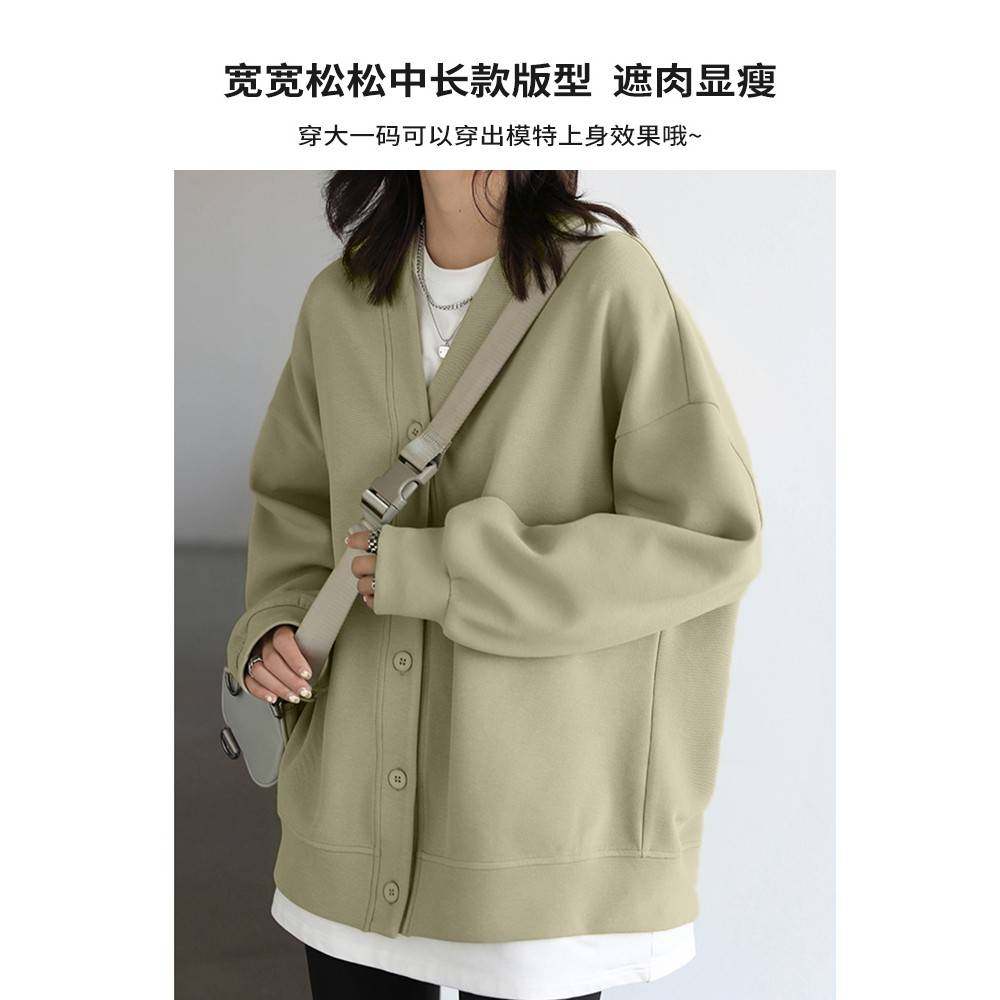 山东即墨V领卫衣开衫女春秋季外套初春款宽松棒球服2025新款厚