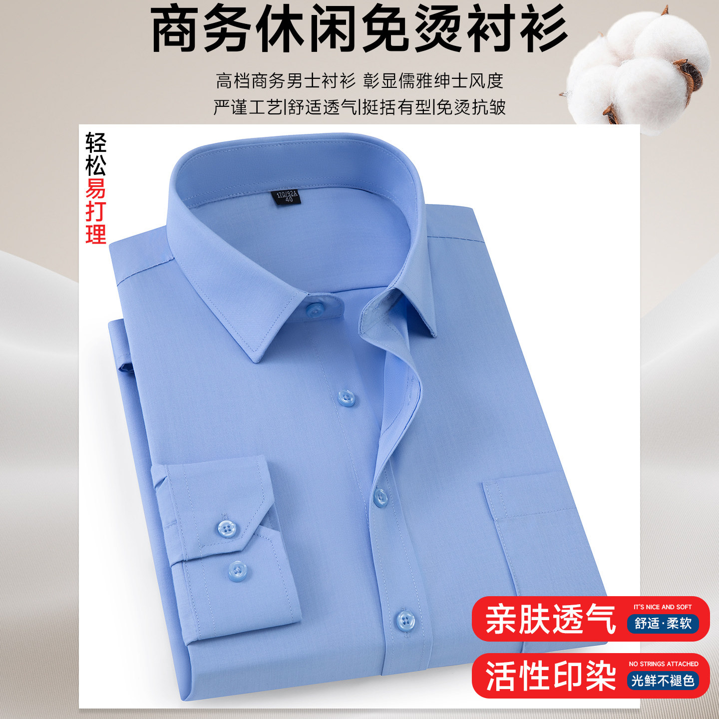 加肥加大男士长袖衬衫宽松大码商务职业胖子白色免烫休闲工装衬衣