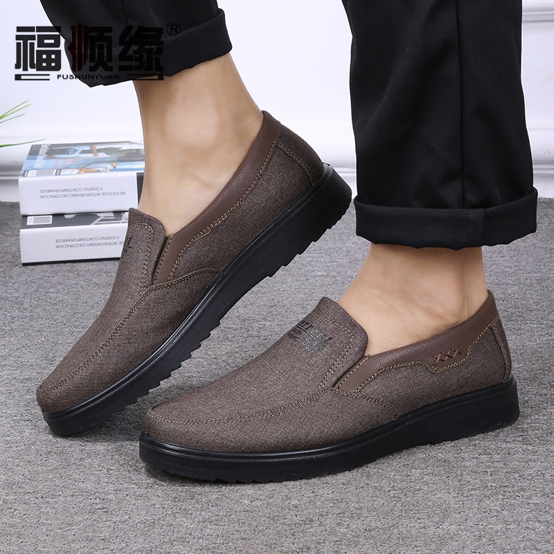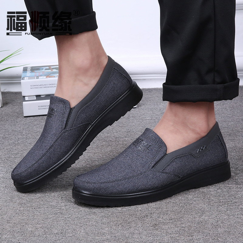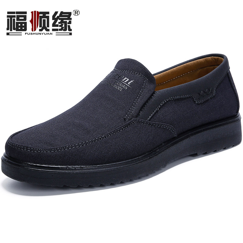 福顺缘春秋新款老北京布鞋软底防滑宽松透气商务休闲中老年男单鞋