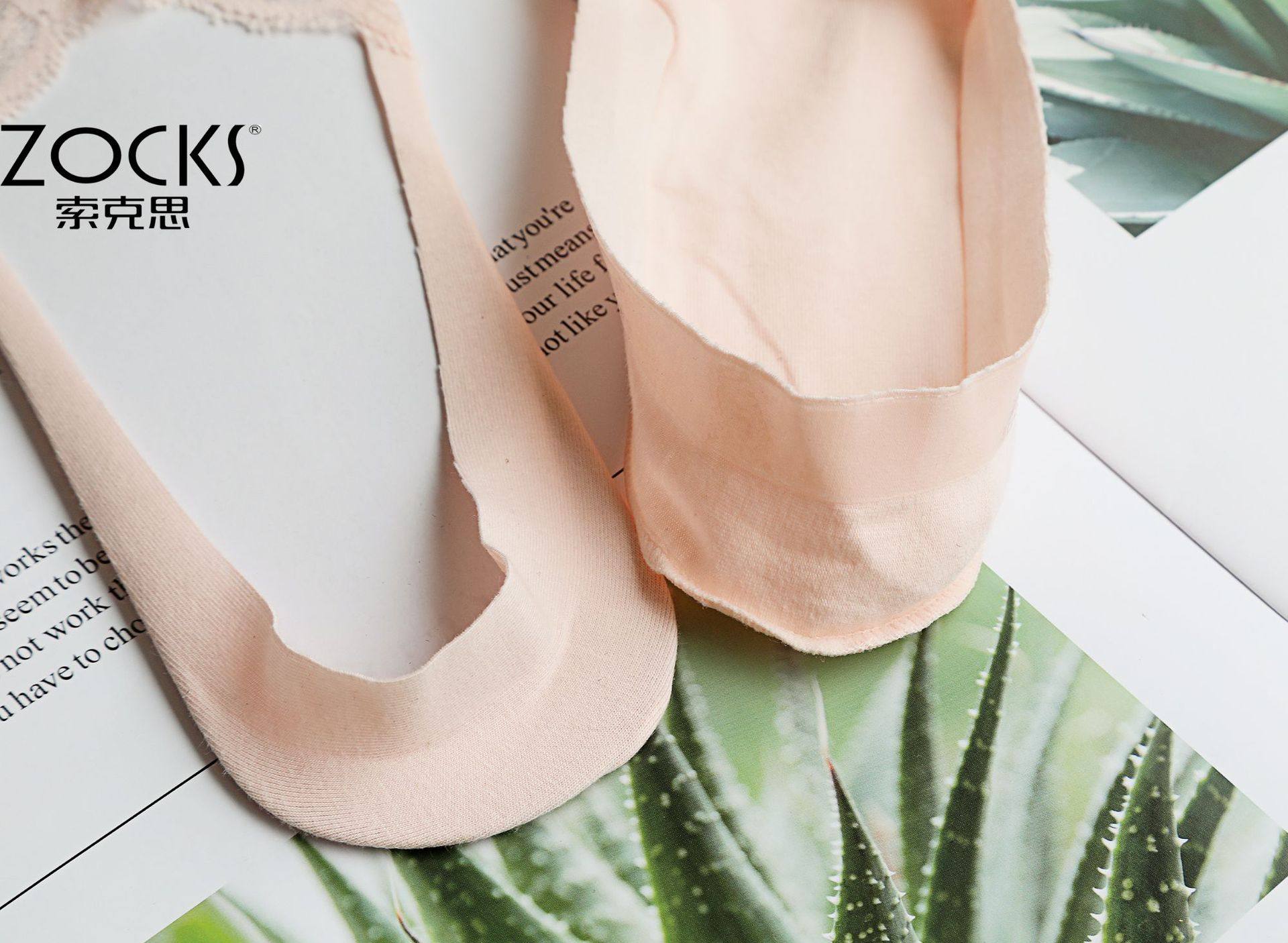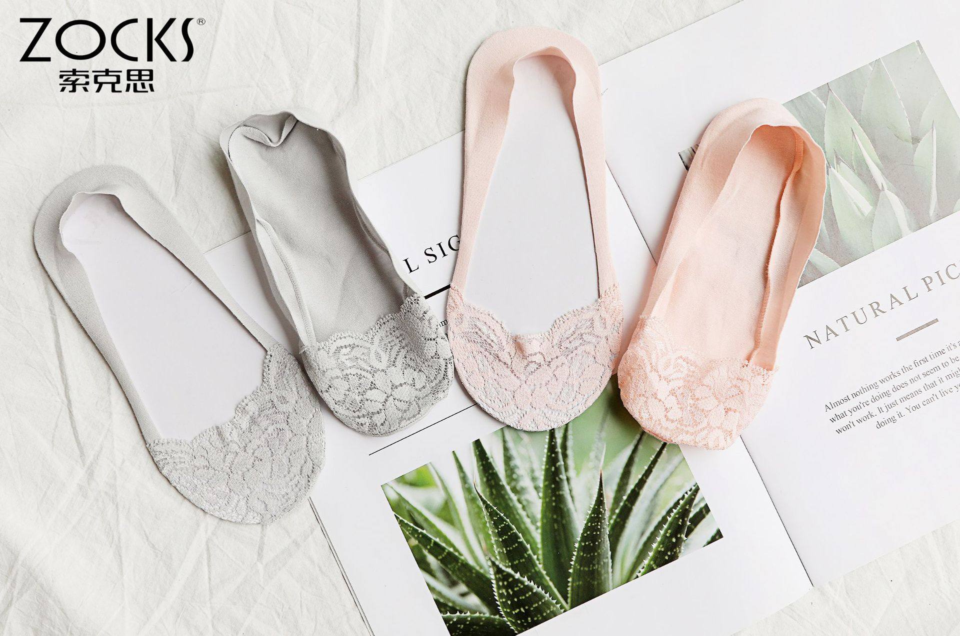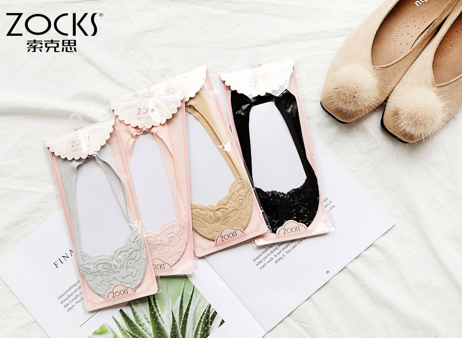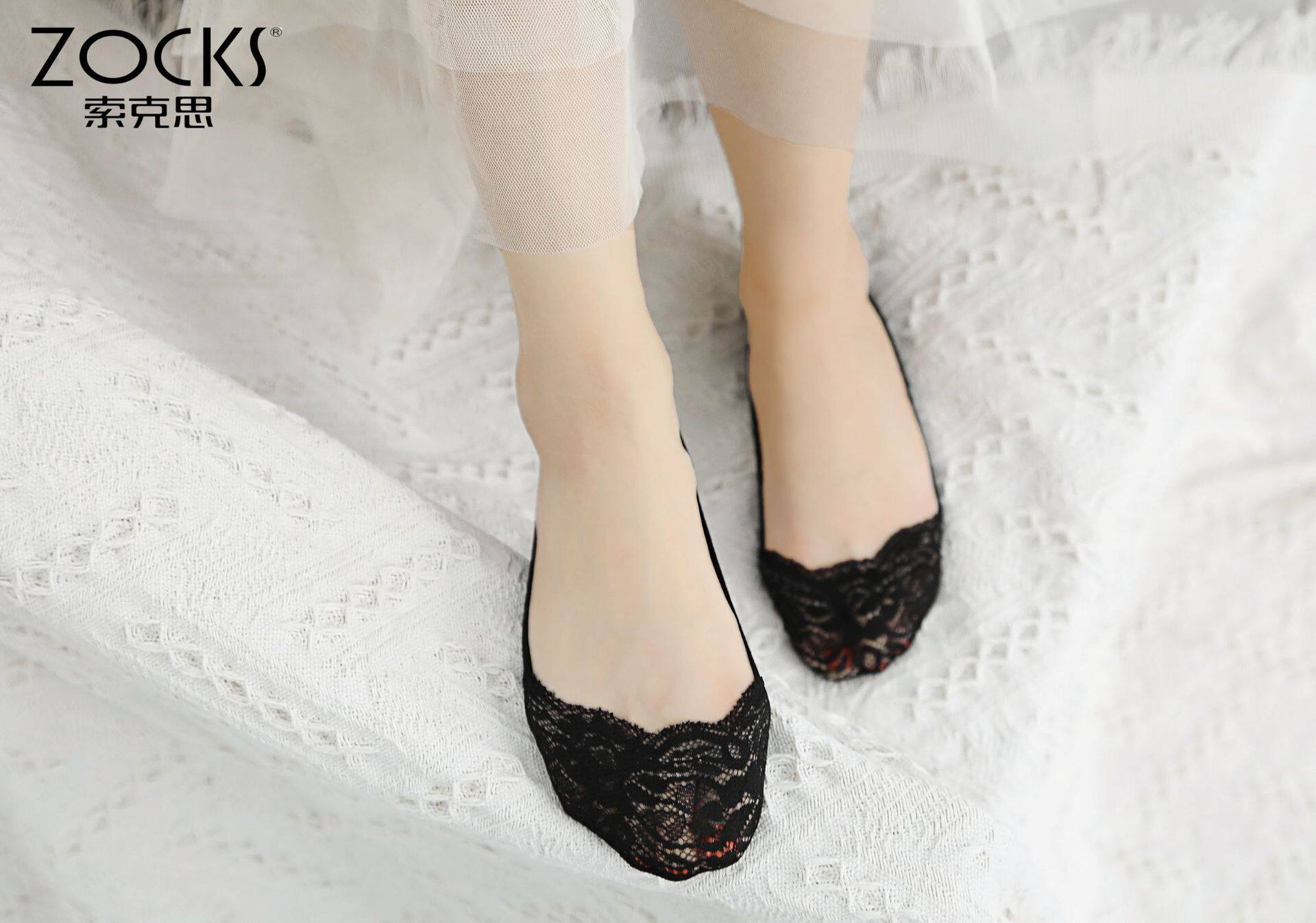 zocks索克思硅胶浅口蕾丝花边船袜隐形棉底脚底防滑女短袜 NJ2008
