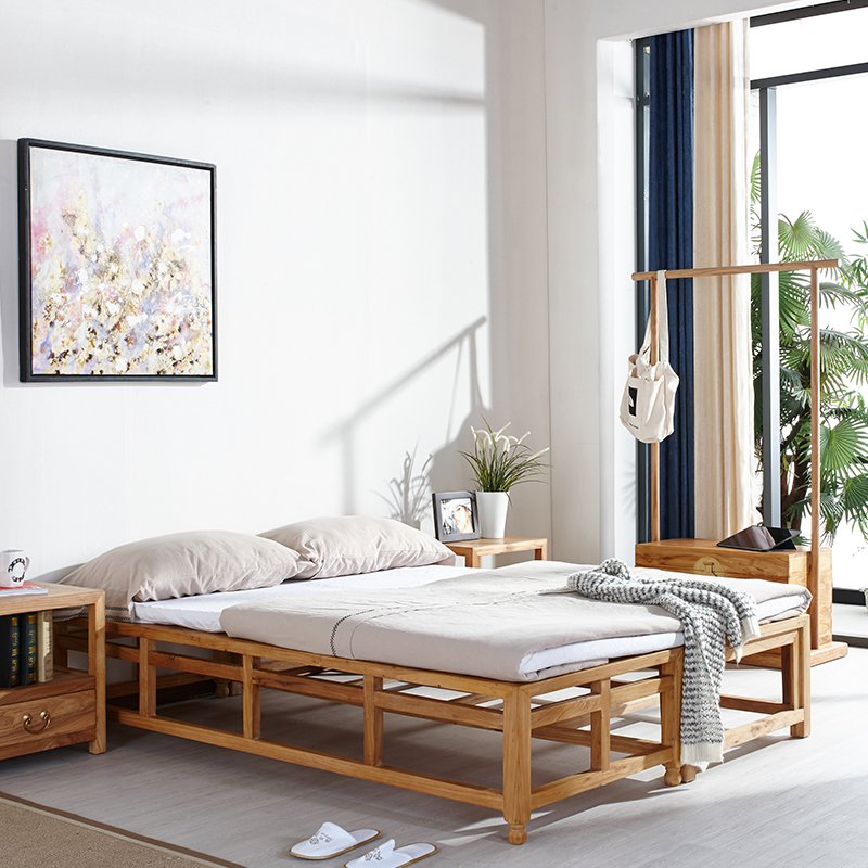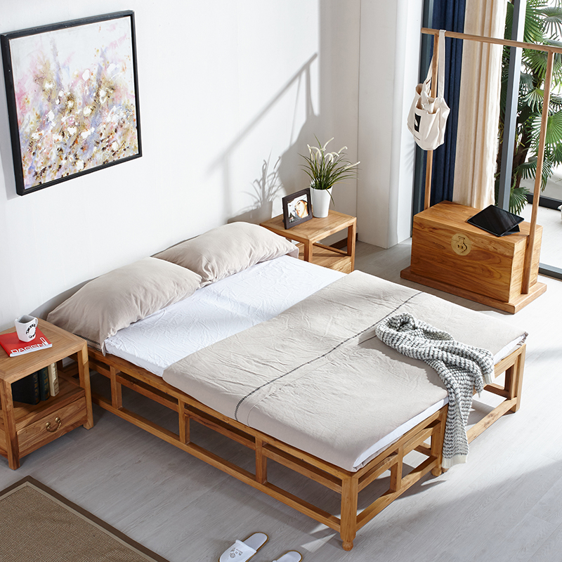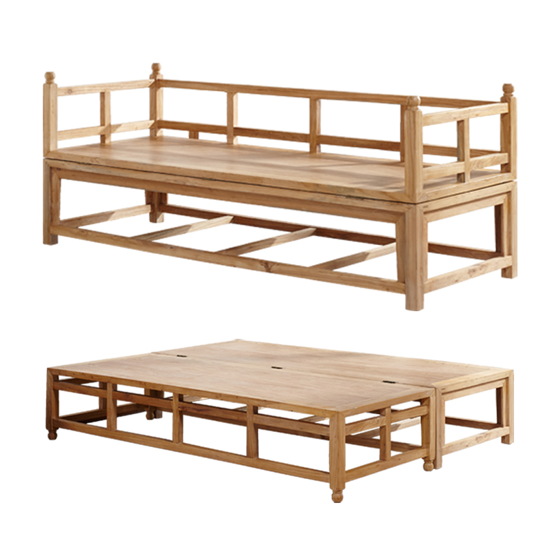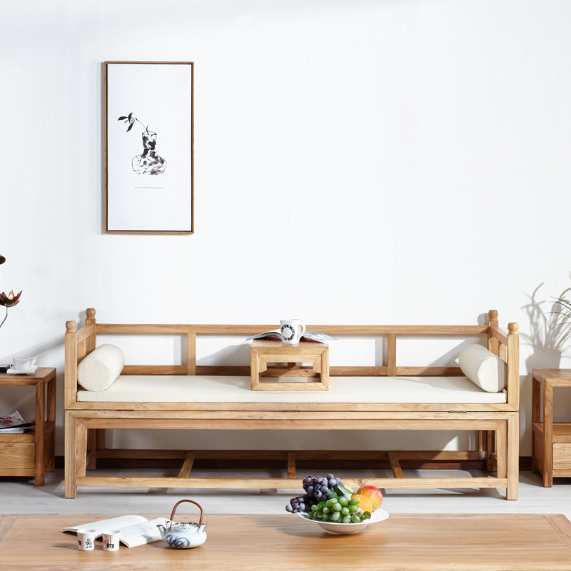 新中式实木罗汉床榆木折叠床禅意简约茶室客厅家用小户型沙发床榻