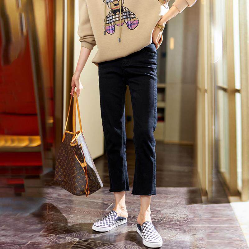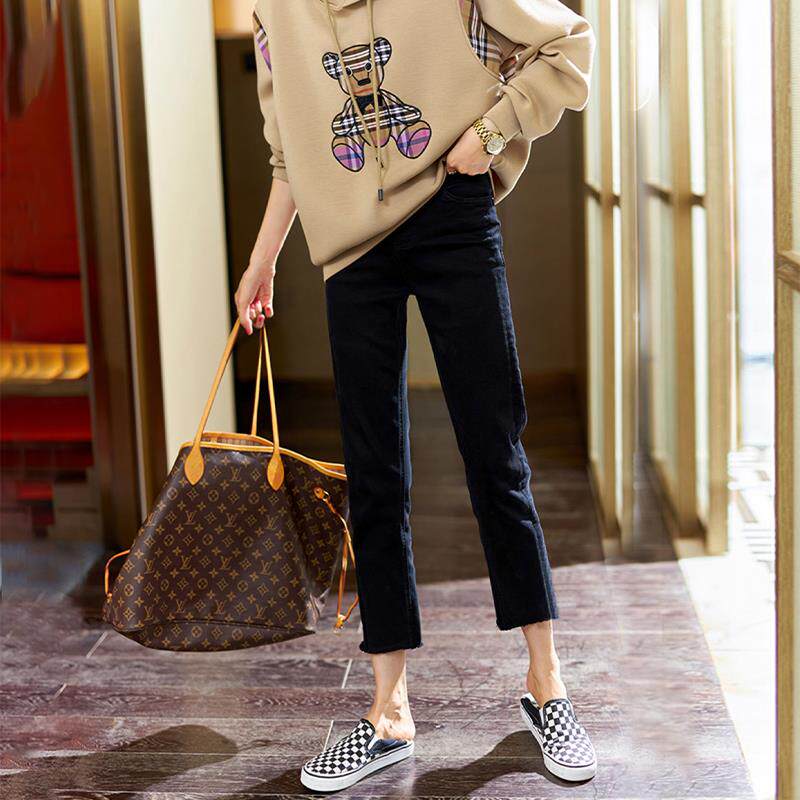 黑色小直筒牛仔裤女九分夏季2025年新款薄款春秋高腰烟管八分裤子