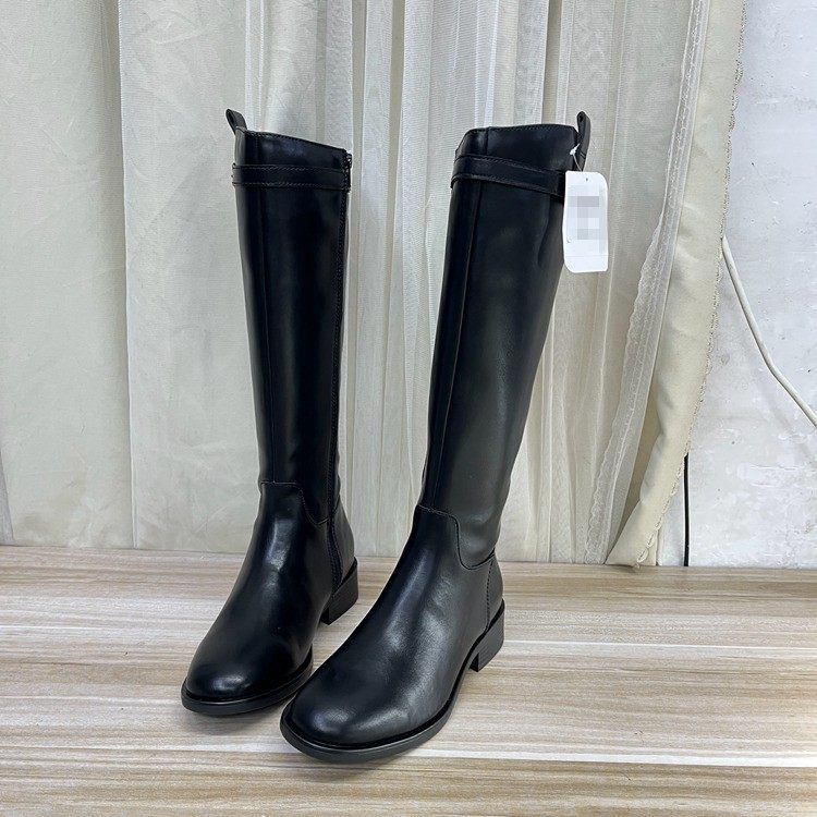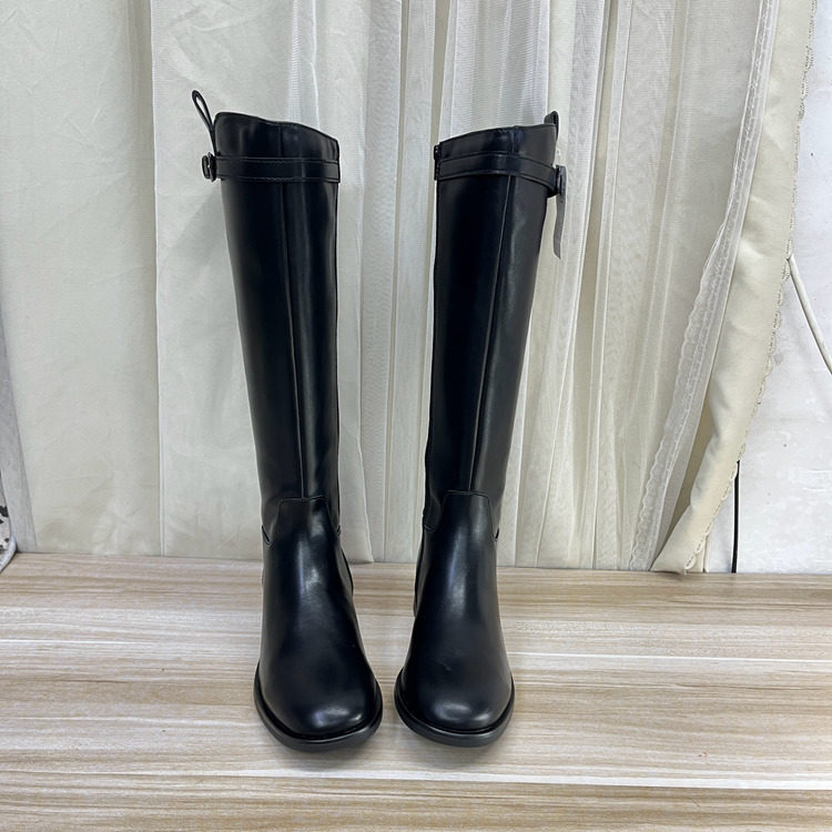 Lady Shoes外贸原单女靴新款时尚圆头纯色粗跟侧拉链时装长筒靴