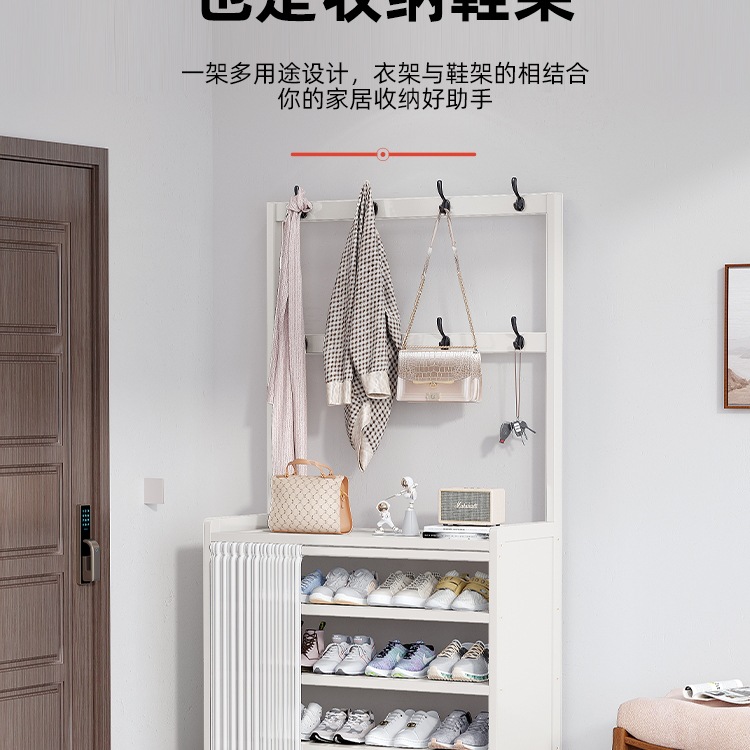 首页> 家居> 多功能鞋架衣帽架一体柜家用门口简易鞋子收纳架省空间多层置物w&