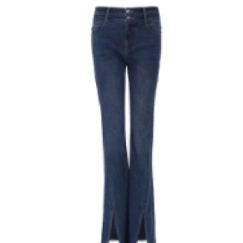 【呼呼专享】开叉秋季牛仔裤高腰弹力女裤适中女士水洗喇叭裤
