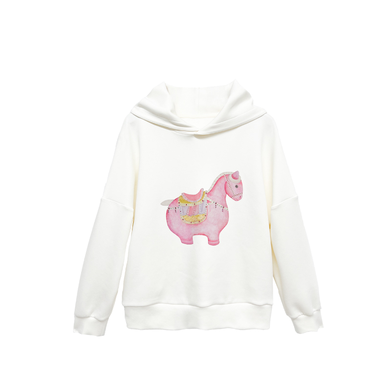 【橙庐】508900原创新中式彩钻三彩萌马空气棉连帽卫衣 春秋国风