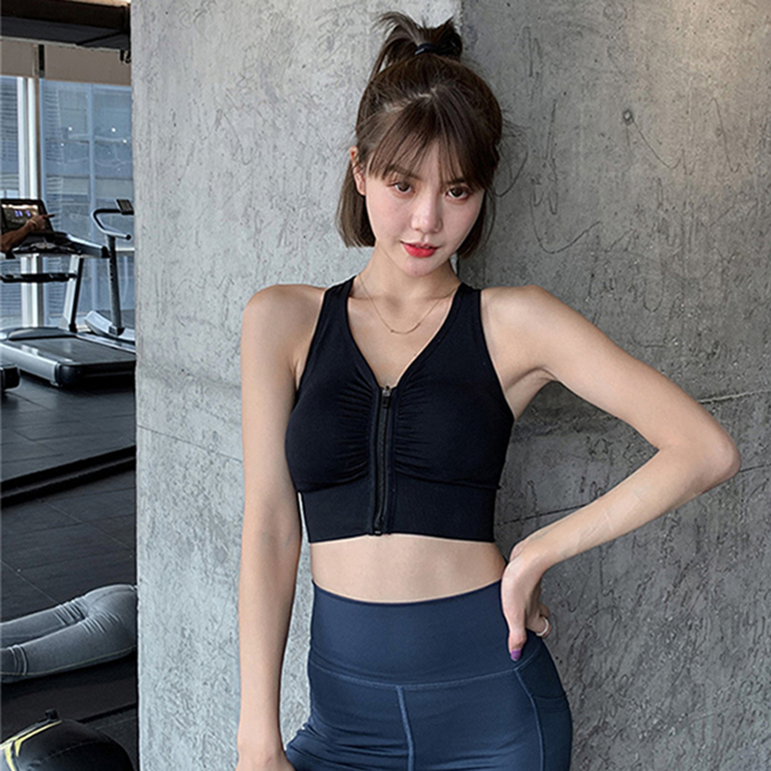 前防爆拉链运动内衣女高强度防震聚拢无痕健身交叉美背文胸罩背心
