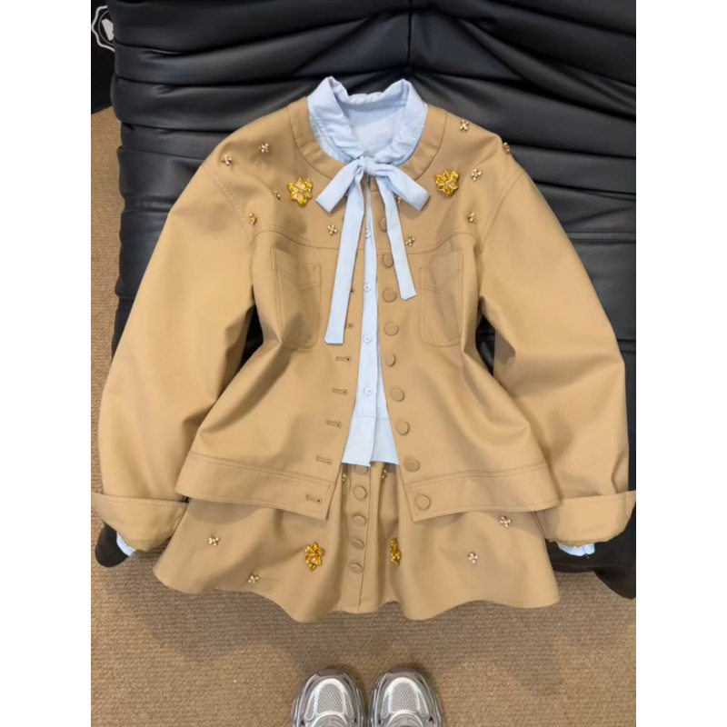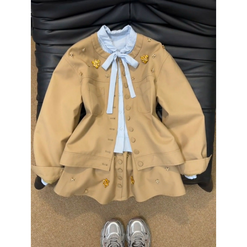 开春穿搭套装2025年浅春系小个子高级感学院风韩系裙子套装