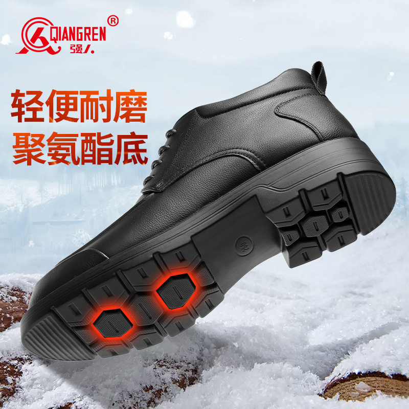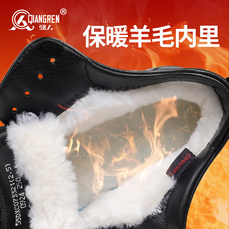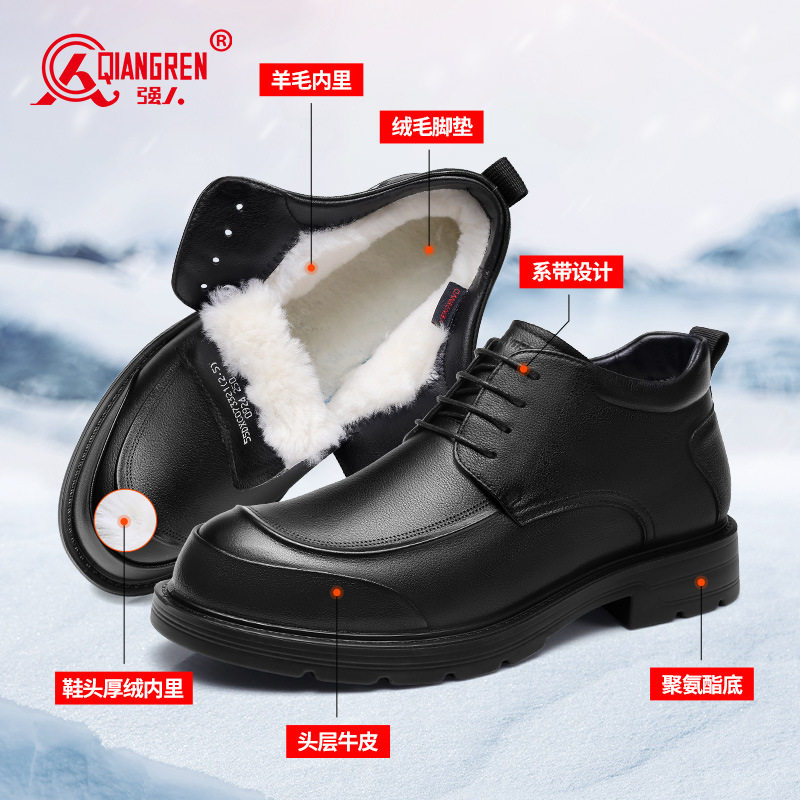 强人品牌正品3515冬季男鞋新款保暖商务棉鞋正装鞋加绒加厚牛皮鞋