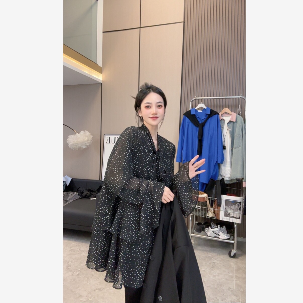 【春日明媚】春上新~精致复古波点开衫长袖衬衫上衣
