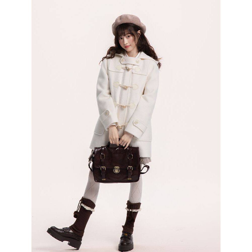 【绪山眠兔】甜美牛角扣大衣女学院秋冬小个子JK制服日系清新外套