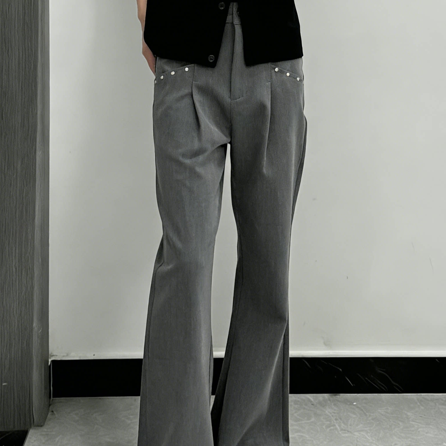 mountain tree柳钉微喇叭西裤男宽松阔腿裤tr面料高级感长裤垂感