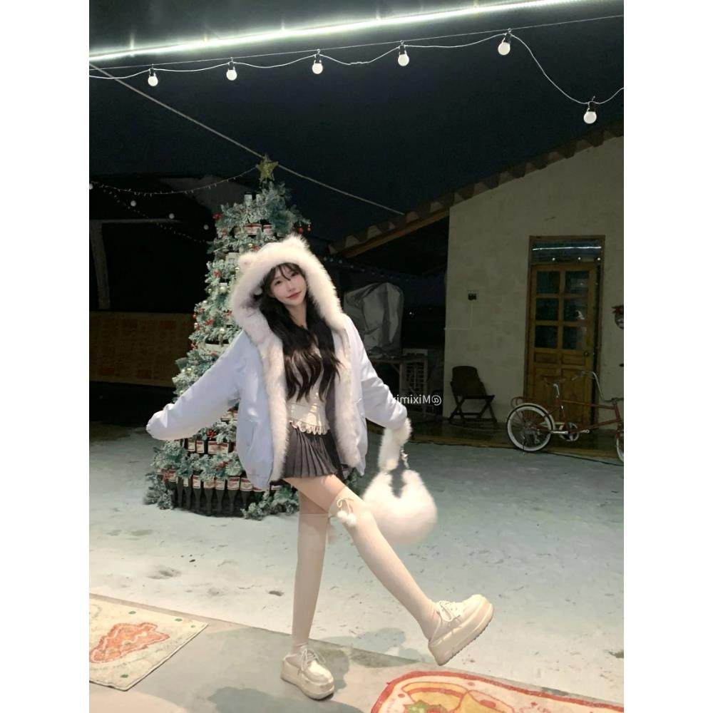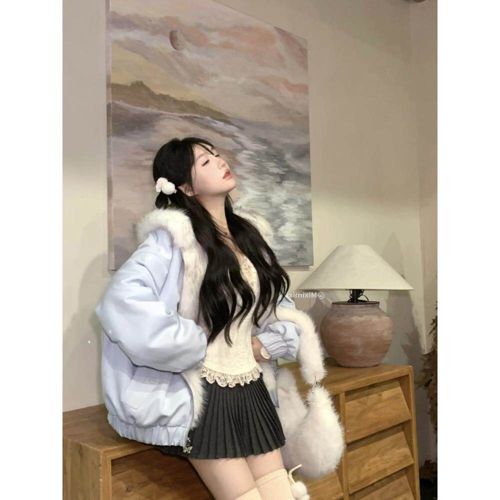甜美可爱连帽外套女冬季新款毛毛拼接设计感双面两穿加厚保暖棉服