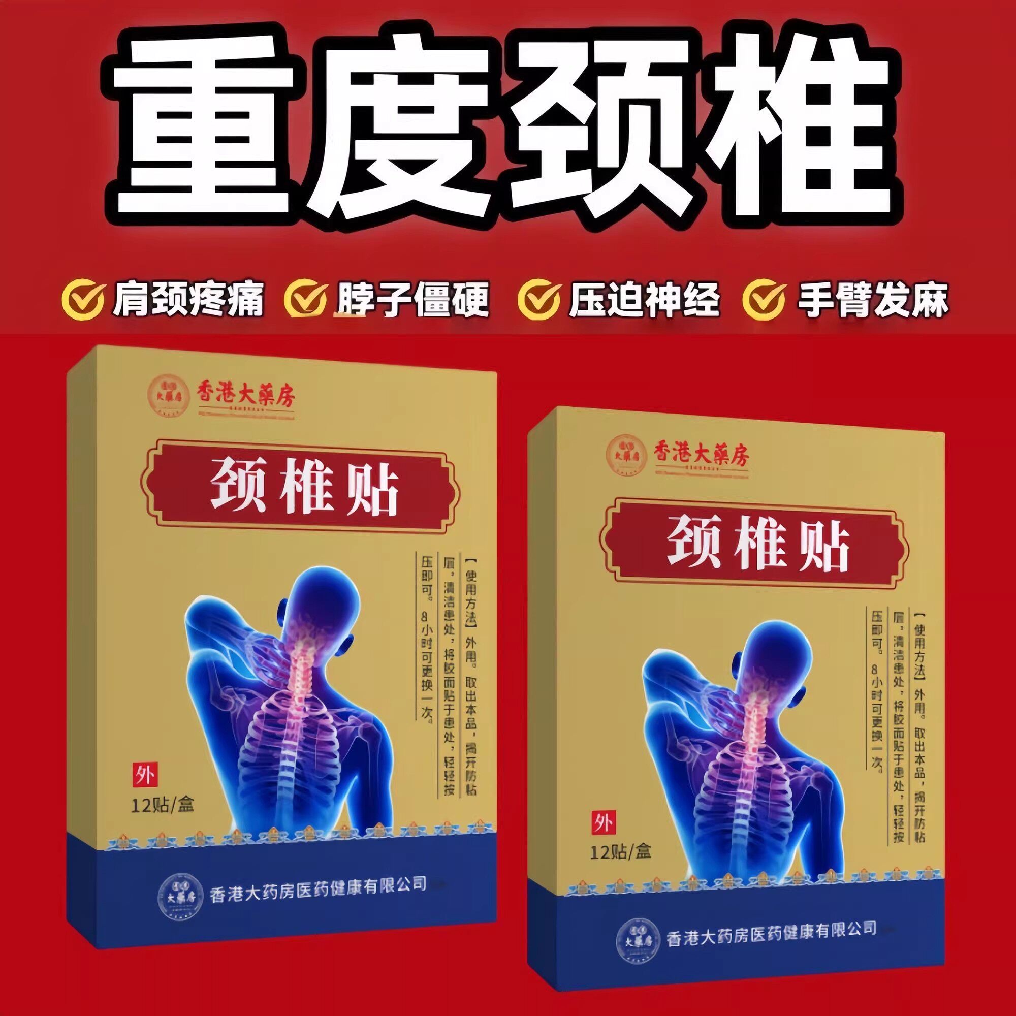 颈椎贴特效头疼头晕手麻脖子颈椎硬肩颈酸疼压迫神经黑膏贴