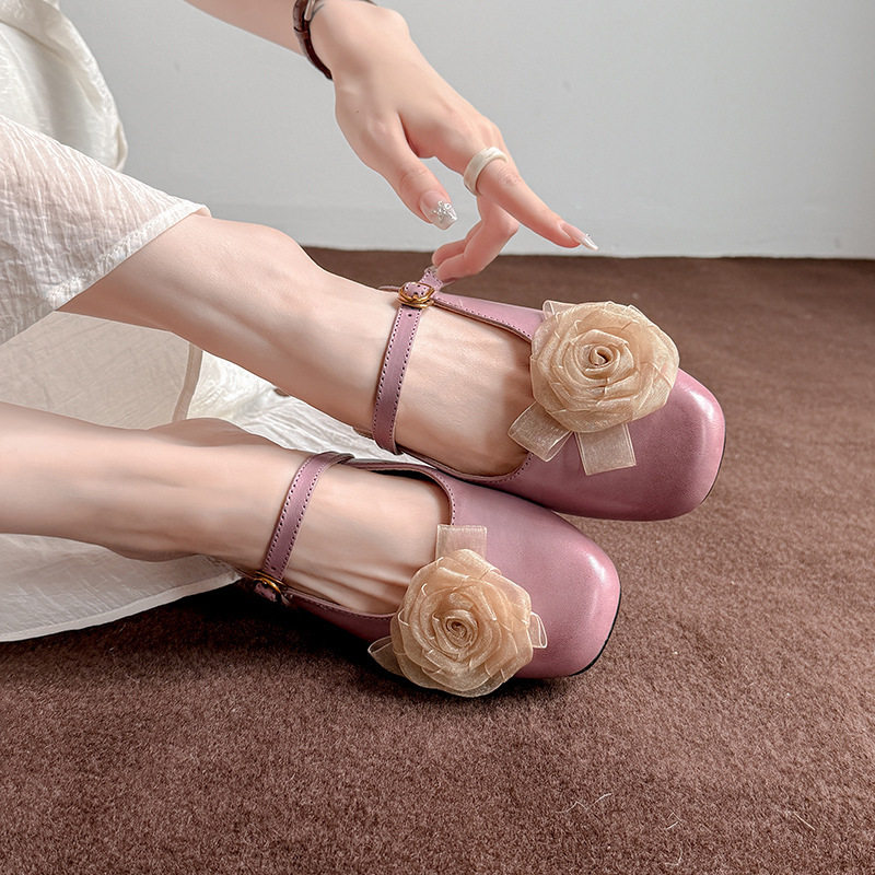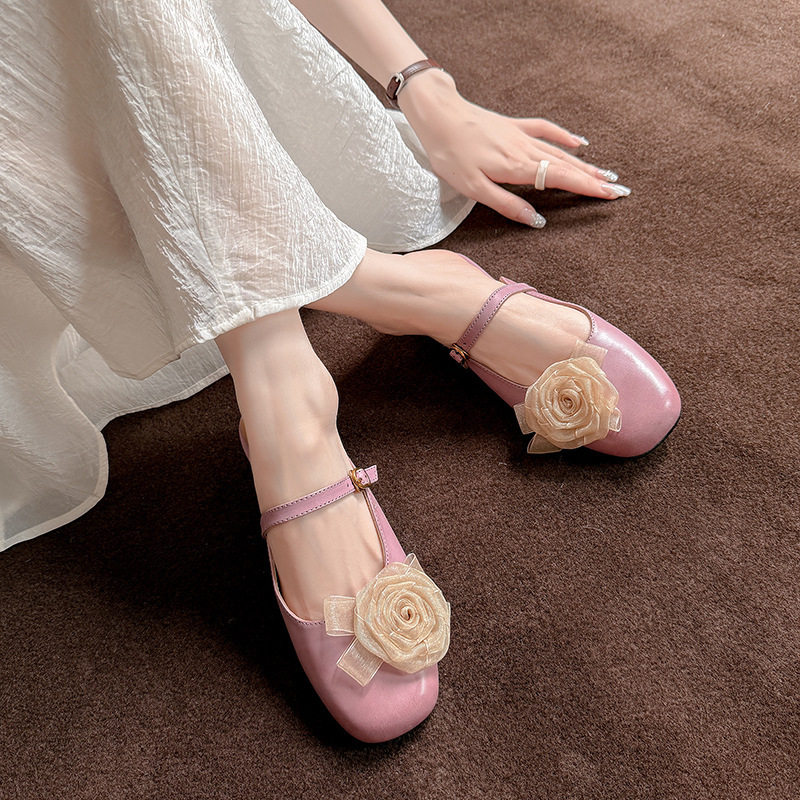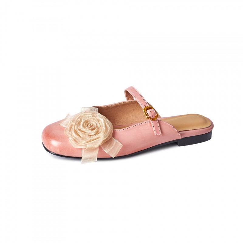 玛丽珍鞋圆头舒适凉拖鞋2025夏季女外穿平底百搭花朵半拖鞋穆勒鞋