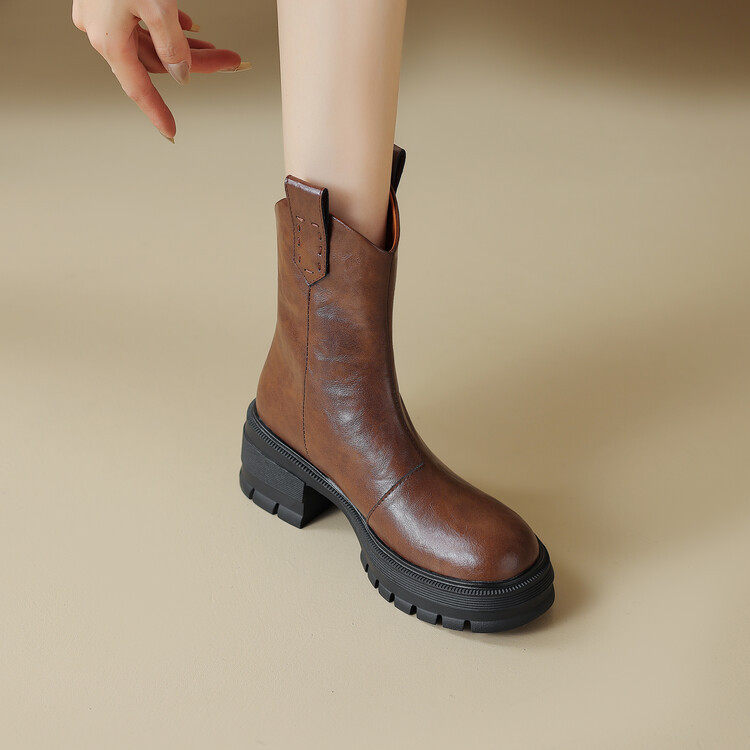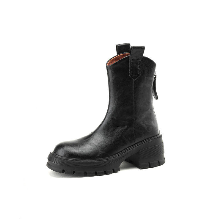 显腿长!ins韩国减龄圆头厚底粗跟V口短靴马丁靴烟筒靴秋冬女短靴