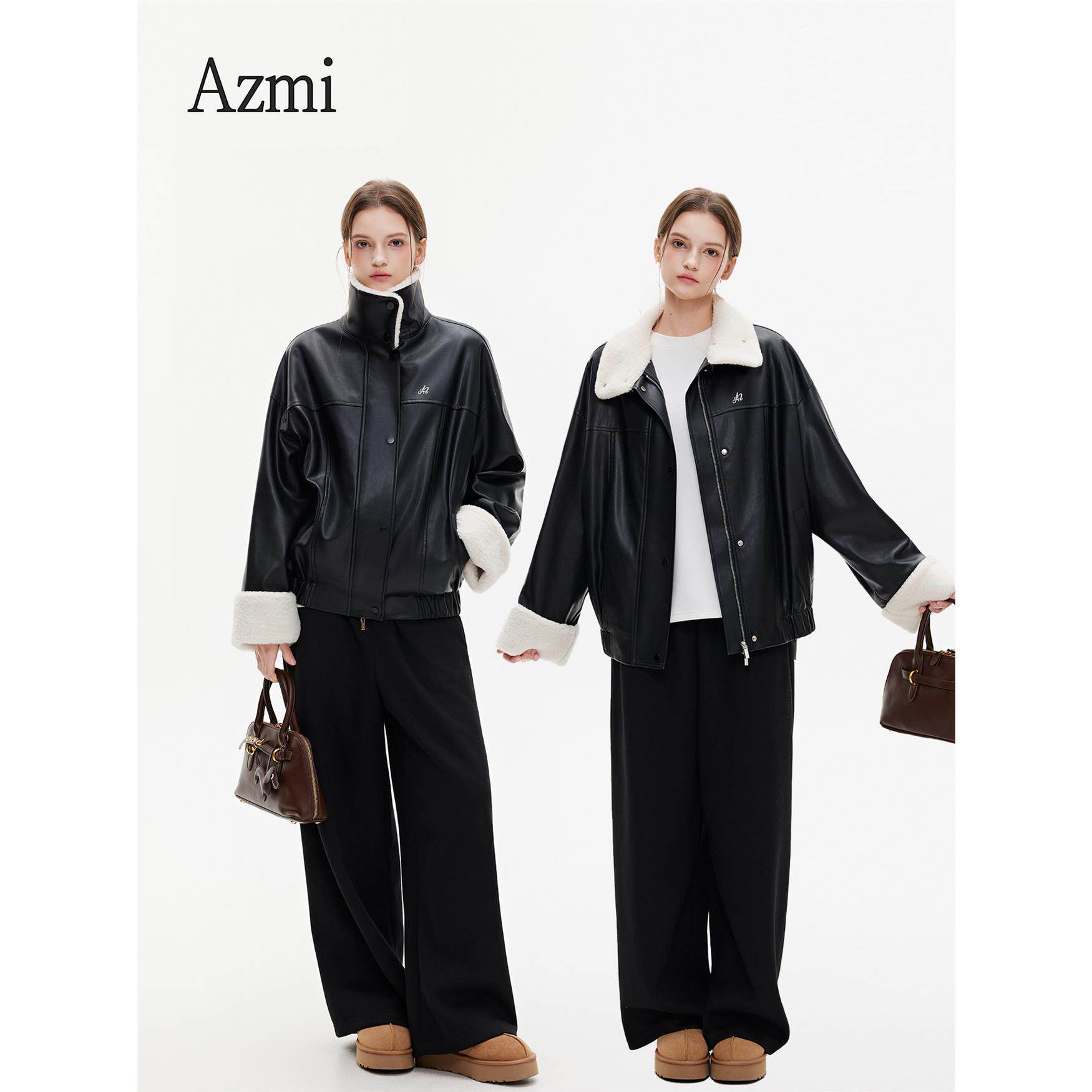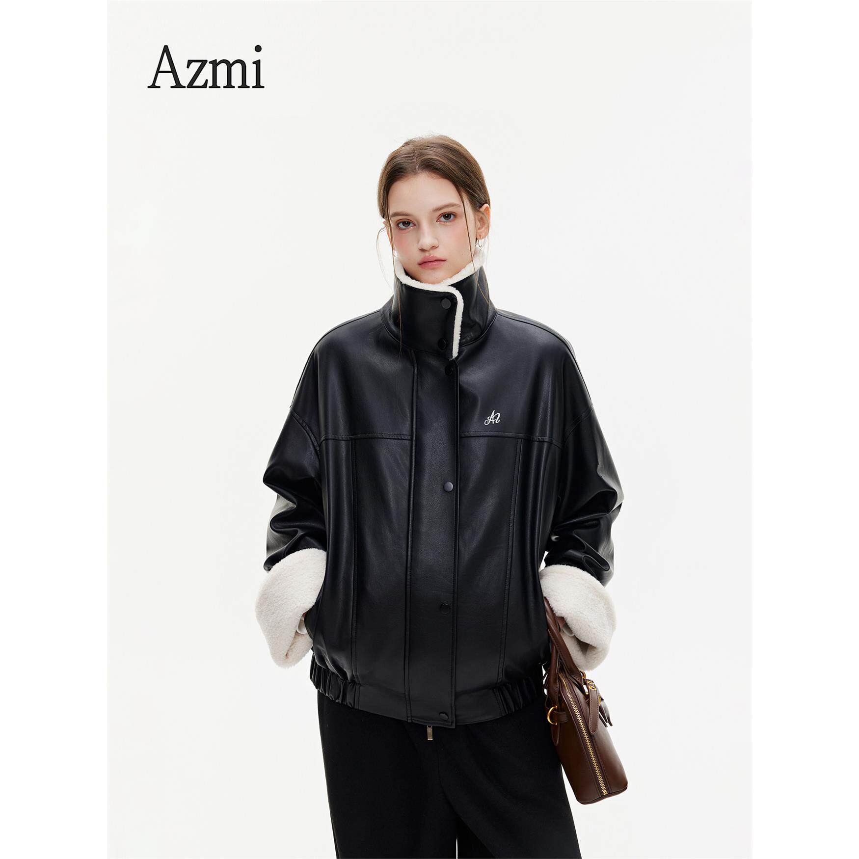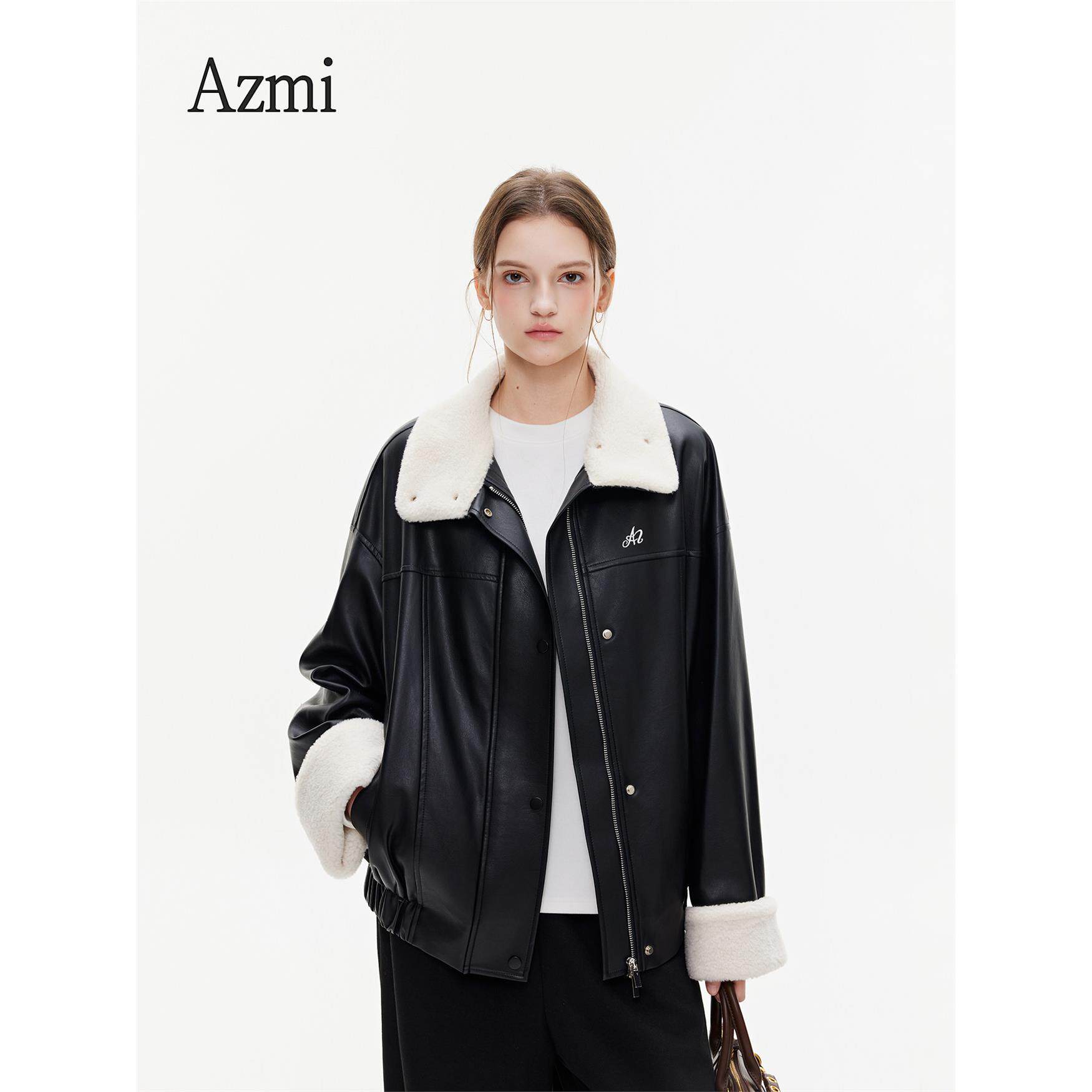 Azmi高级感复古皮毛一体羊羔毛外套女冬季新款宽松加绒加厚上衣服