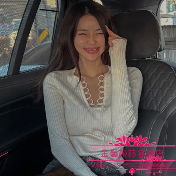 韩国官网正品代购2026年早春新款时尚镂空环扣V领修身显瘦针织衫
