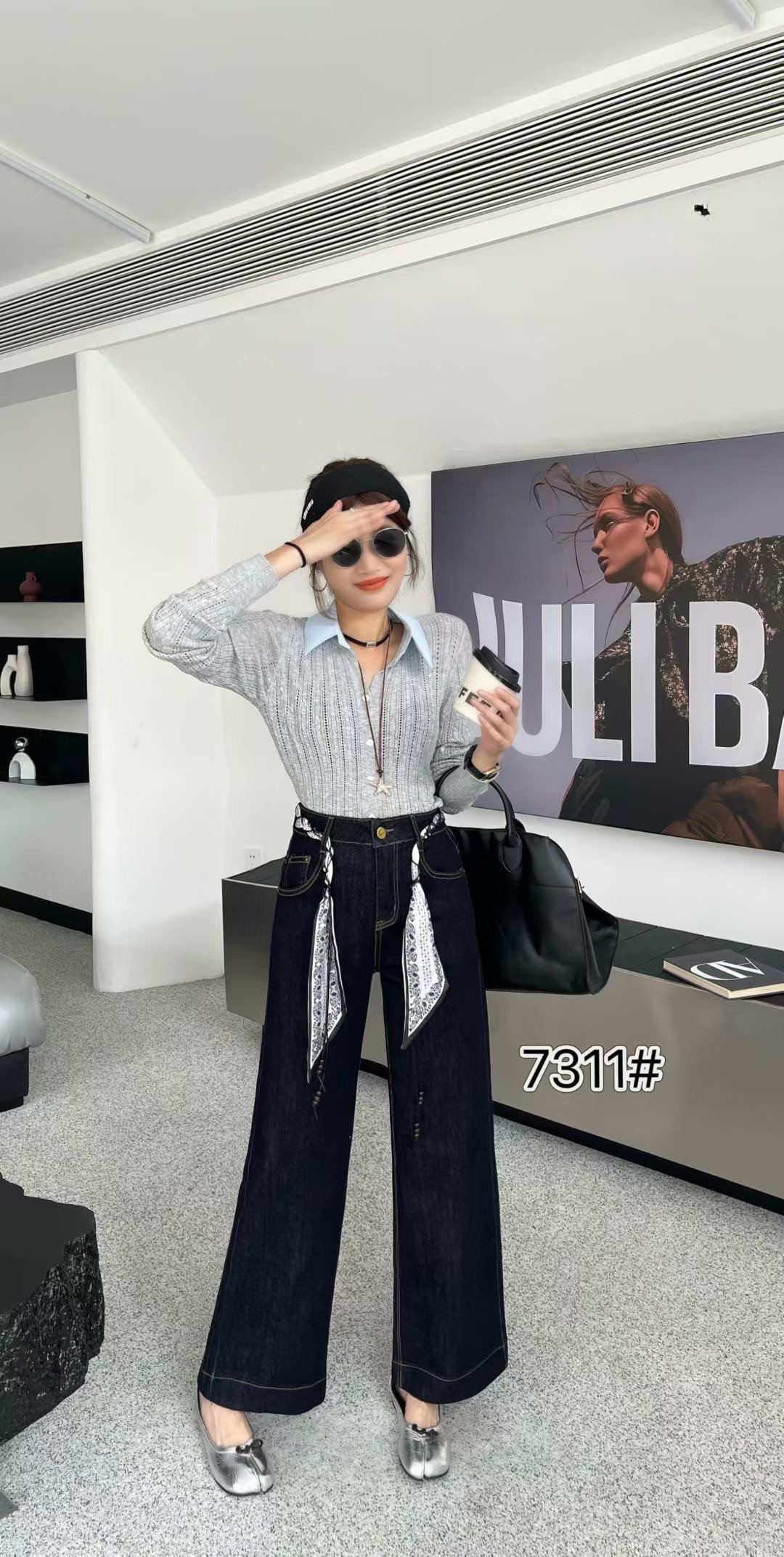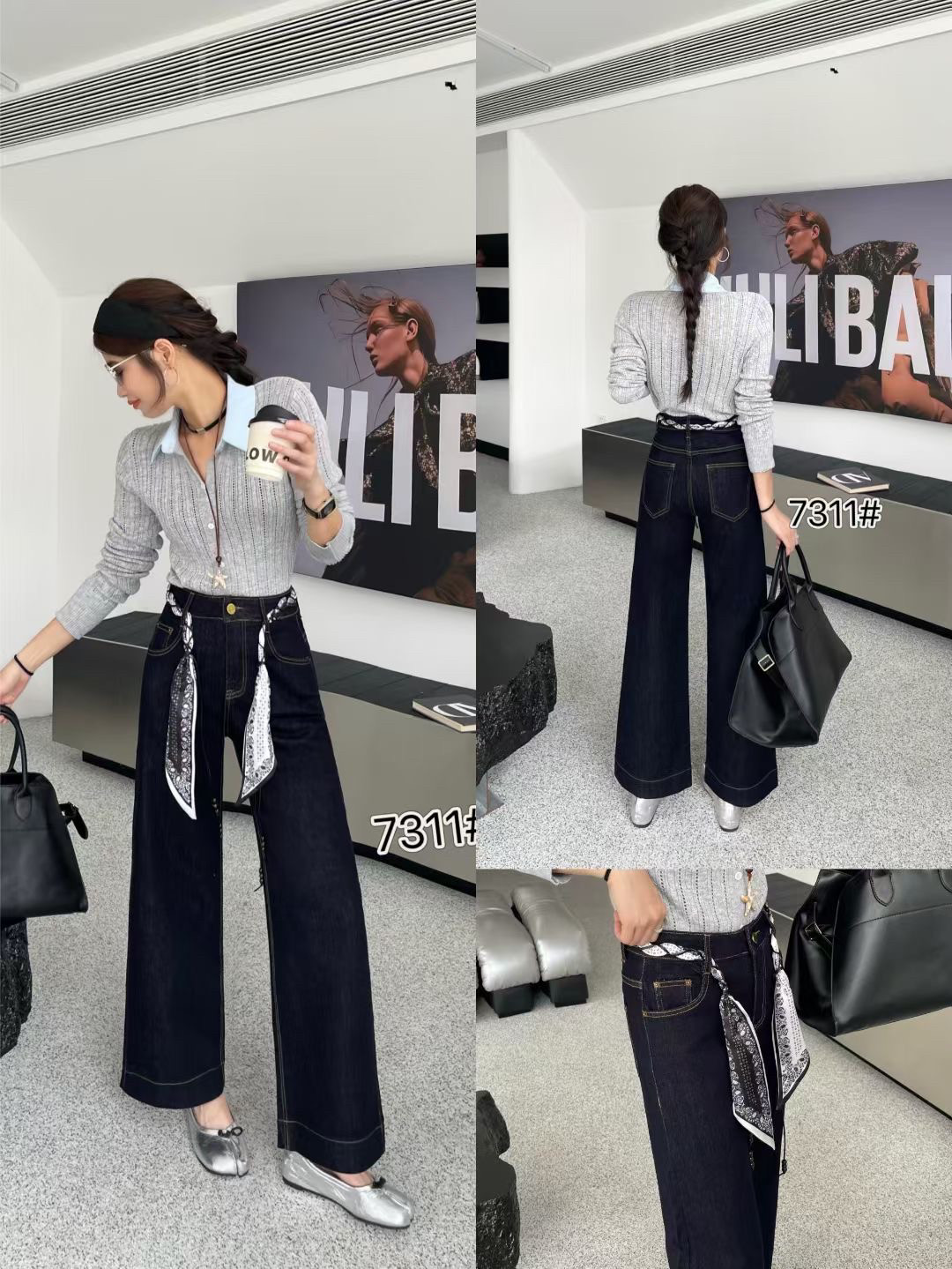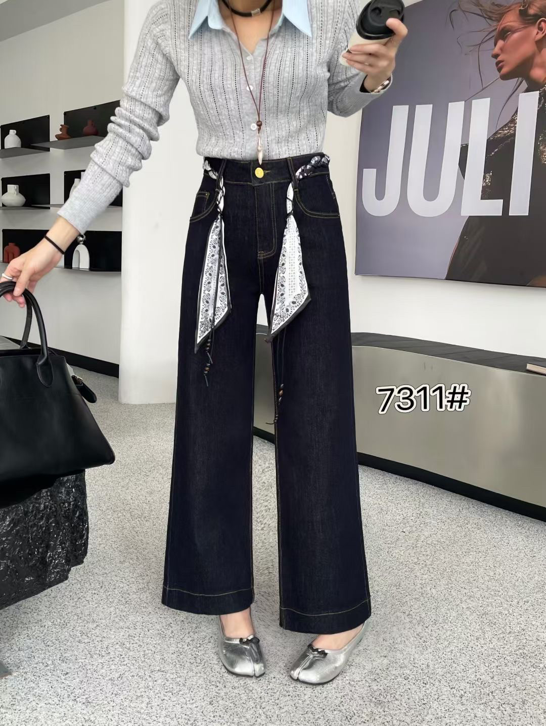 梦佳瑶7311秋季复古直筒牛仔裤女2025欧货新配丝巾腰带九分阔腿裤